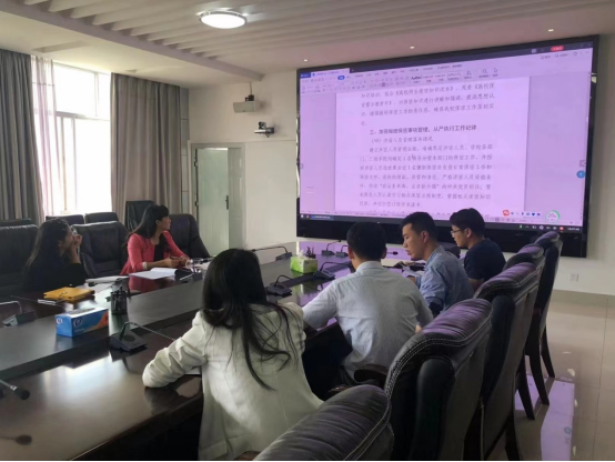 2022年5月10日,办公室副主任顾芳同志在教2楼第一会议室主持召开会议,办公室全体工作人员参加会议,研究保密专项检查迎检工作相关事宜。