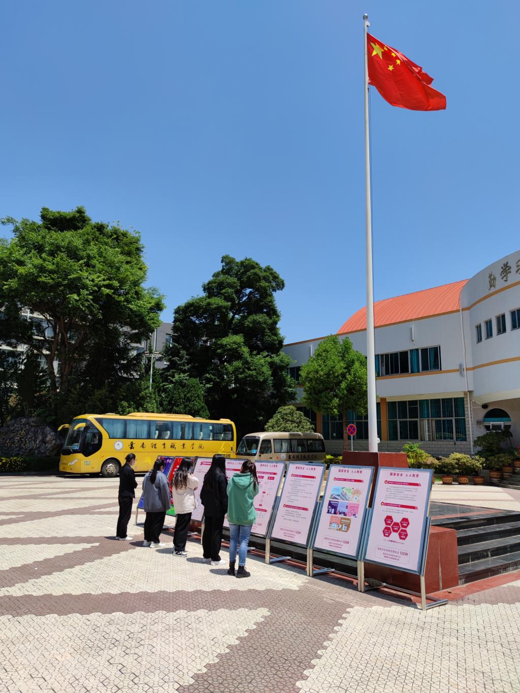 学校保卫处在校园内人员密集场所、醒目位置,通过LED显示屏、宣传栏、悬挂宣传标语等形式,积极开展“全民国家安全教育日”宣传活动,让全校师生在日常的学习、工作、生活中能掌握国家安全知识,提升国家安全意识,自觉维护国家安全。同时通过官网上传《国家安全法》《保密法》《反间谍法》等涉及国家安全重要法律法规,推动学校落实维护国家安全的法定职责,增强国家安全责任感、使命感,提高广大师生员工维护国家安全的法治意识。