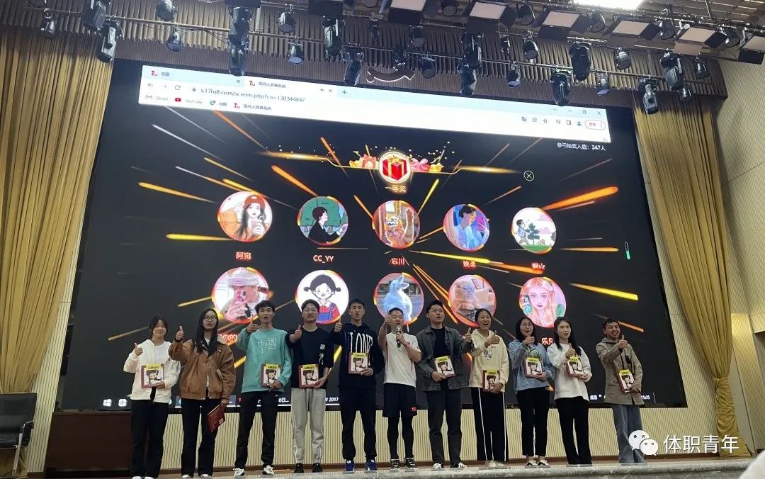 讲座的最后,郭老师通过小程序随机抽取了十名幸运的同学,赠送了他自己编写并附着亲笔签名的《王牌替补》,与同学们齐声高喊:“体职院,加油!"。