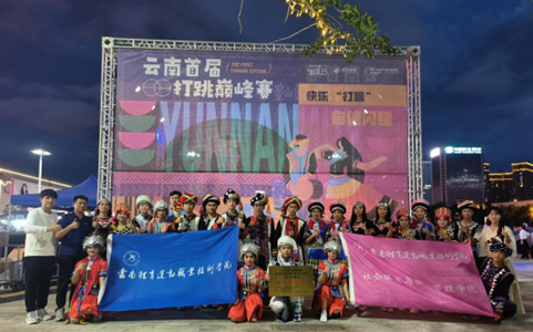 近日,为了鼓励民族文化多样性,保障各民族文化权益,促进民族团结,推动各民族共同发展,best365社管学院的学生社团“滇”民舞社应春城晚报的邀请,于5月26日代表学校参加了云南首届打跳巅峰赛,并荣获“最佳表演奖”。