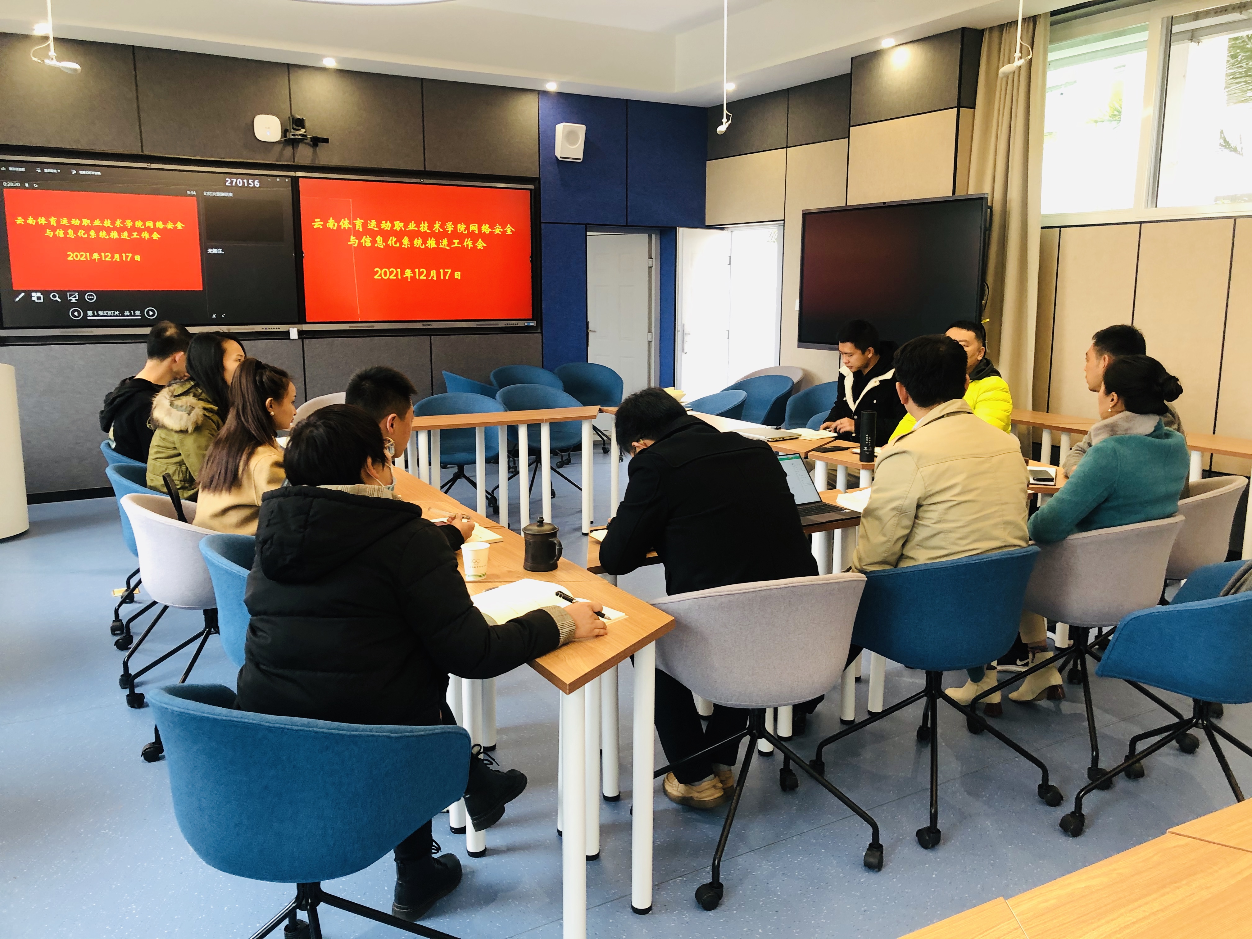 会上,聂真新副院长就网络安全与信息化建设工作强调了四点意见,一是充分认识信息化建设工作的重要性,特别是数字技术与体育的融合发展;二是相关职能部门明确时间表、任务书,尽快落实解决目前信息化存在的问题;三是相关职能部门应加强统筹协调,强化顶层设计,科研管理应加快中心机房、普通机房、信息化系统建设工作,教务处应针对学籍信息存在较大安全风险问题尽快梳理解决;四是加强校企合作,共建校企命运共同体,共同努力促进学校与企业高质量发展。