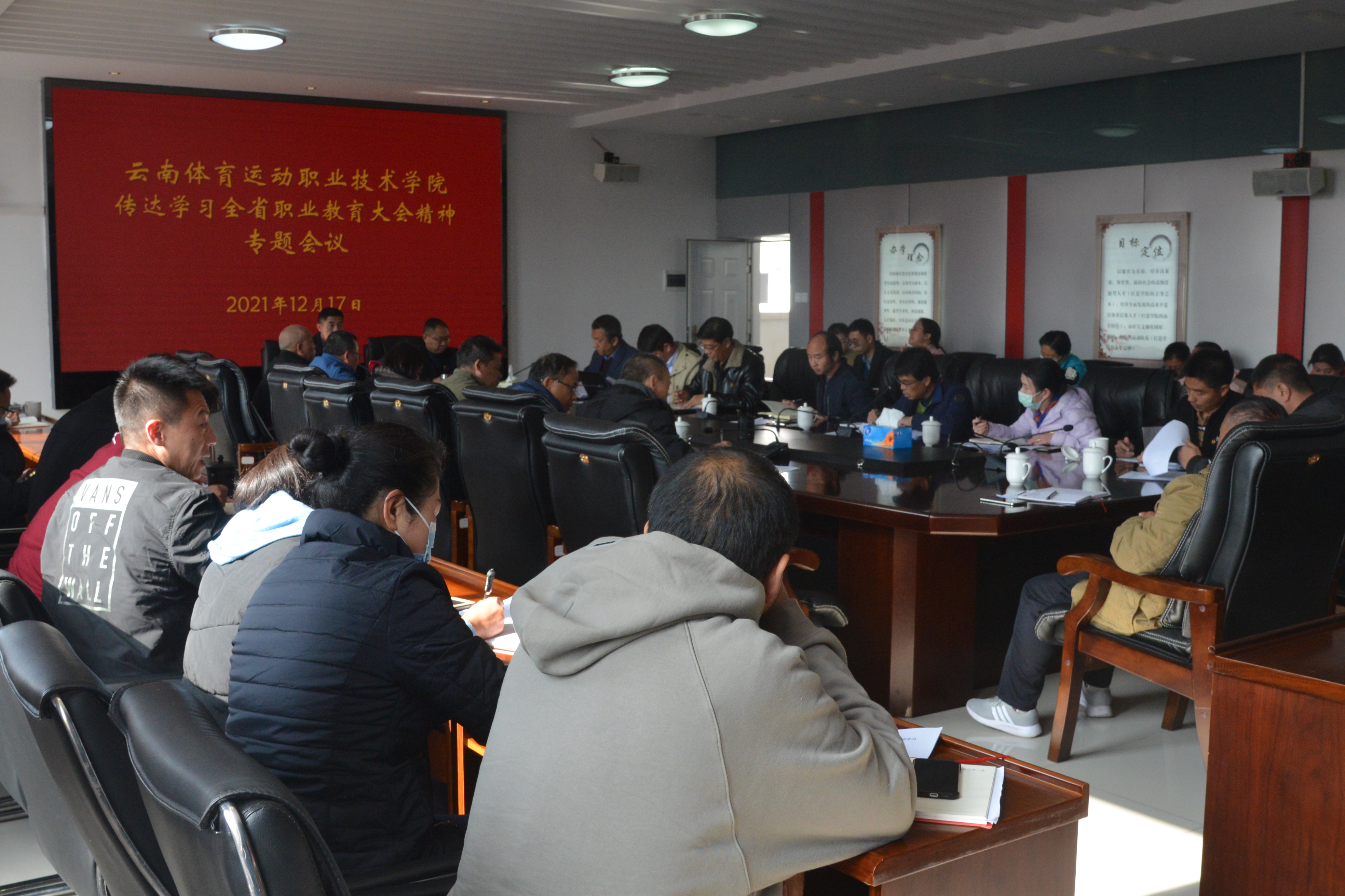 12月17日下午,学校在教2楼四楼第一会议室召开专题会议,传达学习12月17日上午刚刚召开的云南省职业教育大会精神。