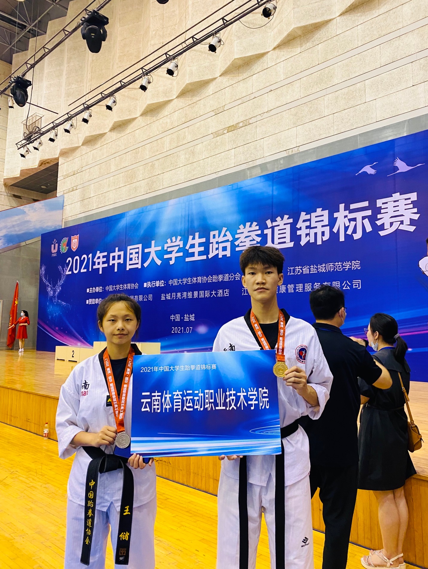 2021年7月20-25日,best365跆拳道代表队前往江苏盐城市参加“2021年中国大学生跆拳道锦标赛”,经过5天激烈角逐,best365中国官方网站校跆拳道代表队获1金1银,19大运张永存获得乙组男子71kg金牌;17小运王储获得乙组女子53kg级银牌。本次比赛共有144所高校,1136名运动员参赛。希望best365跆拳道代表队再接再厉,为学校为云南省再次争光添彩。