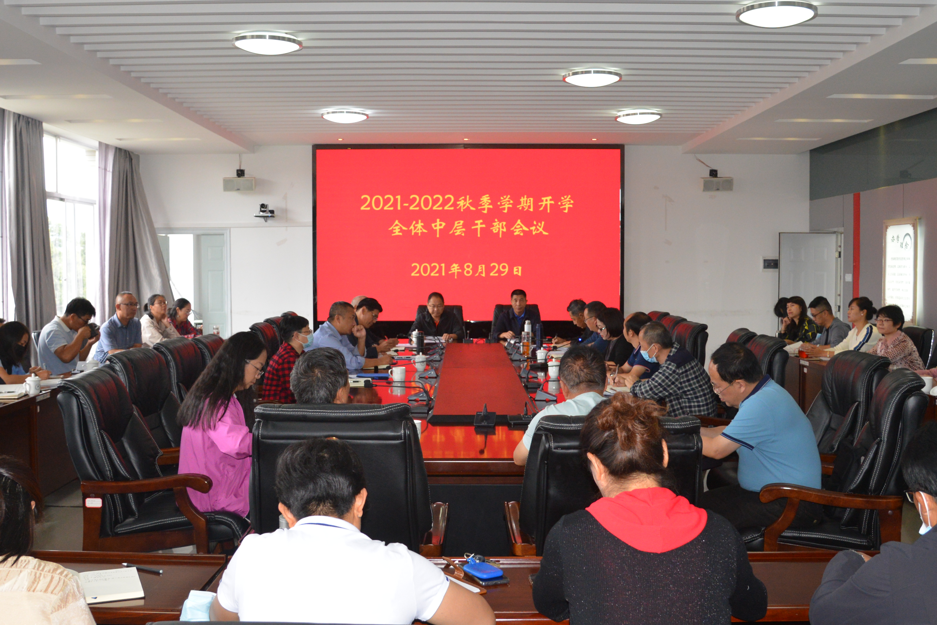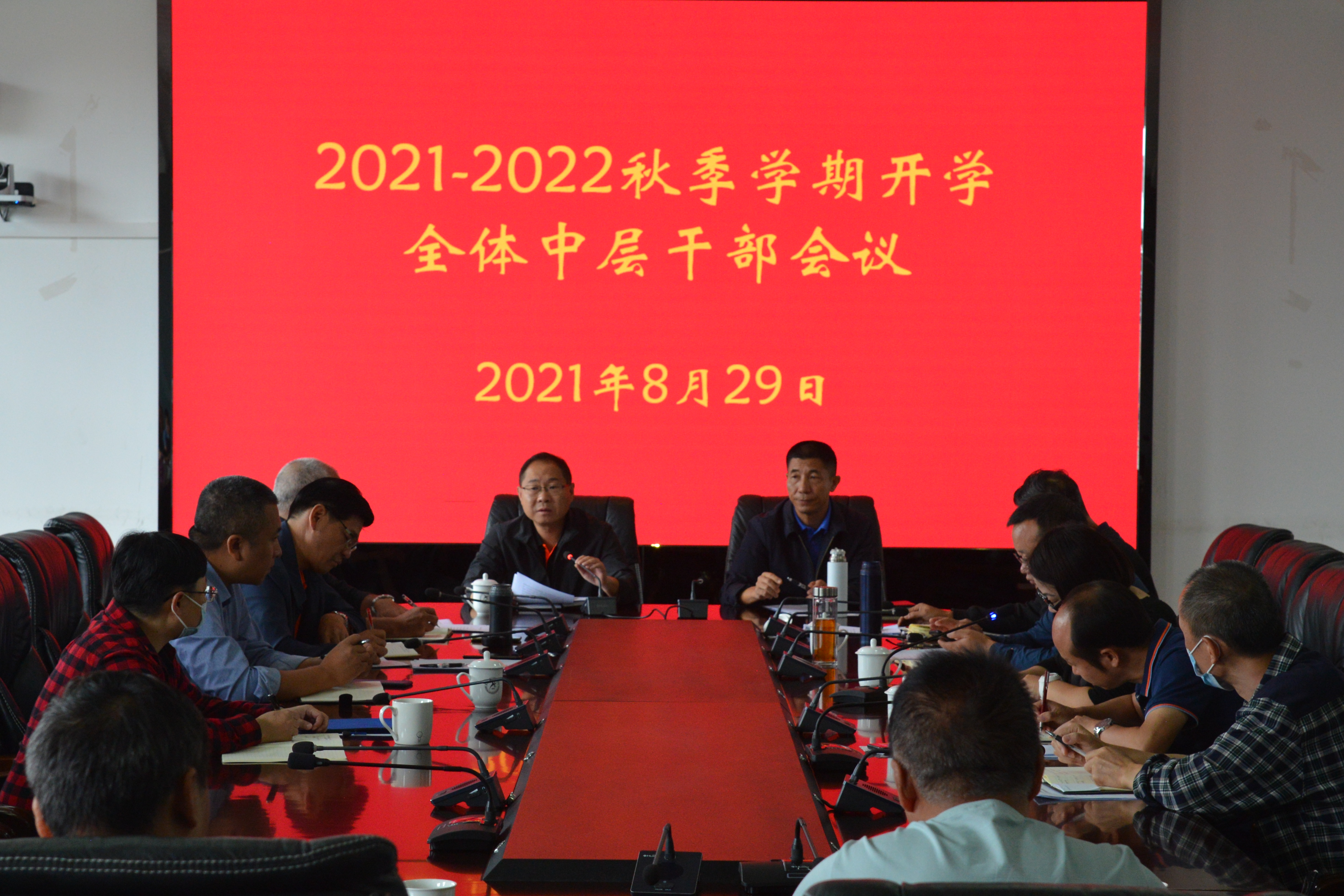 8月29日上午,学校在云帆楼四楼第一会议室召开2021-2022学年秋季学期开学全体中层干部会议,会议由党委书记缪军主持,学校领导班子成员,副科级以上中层干部参加了会议。