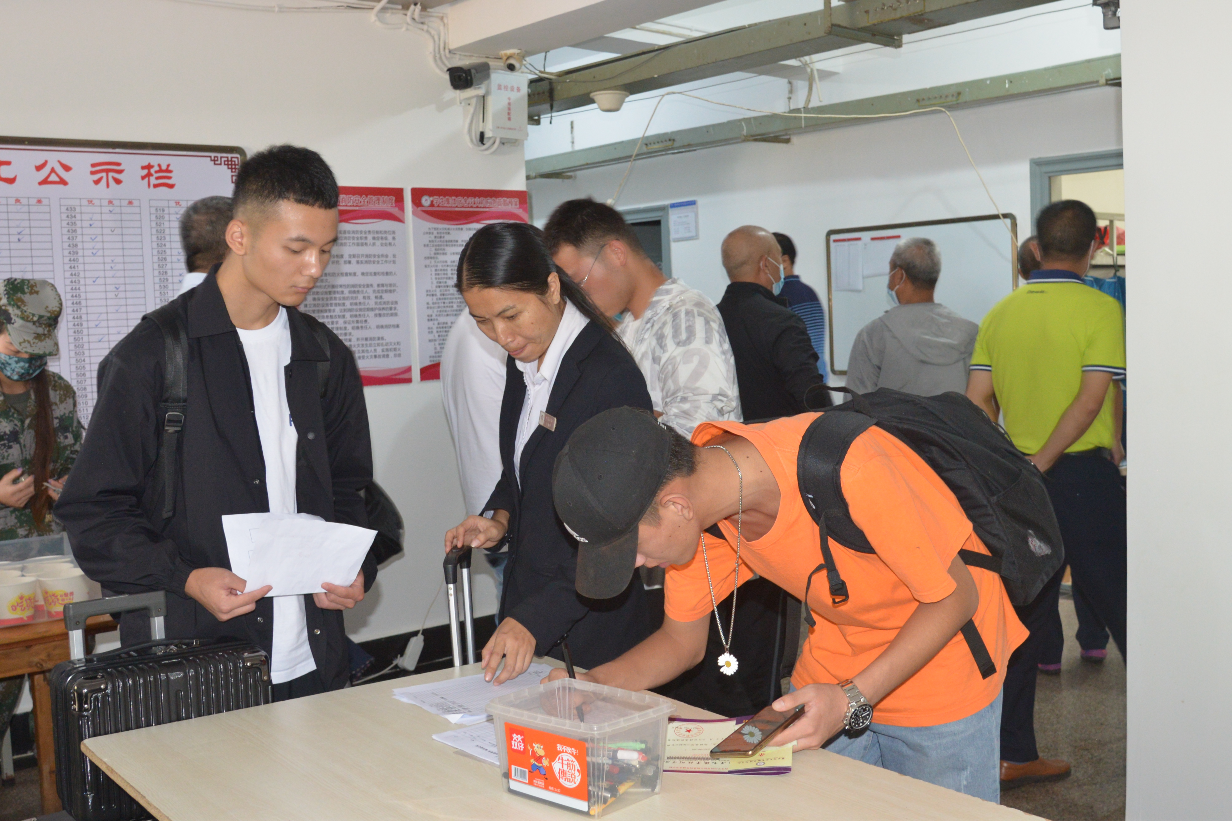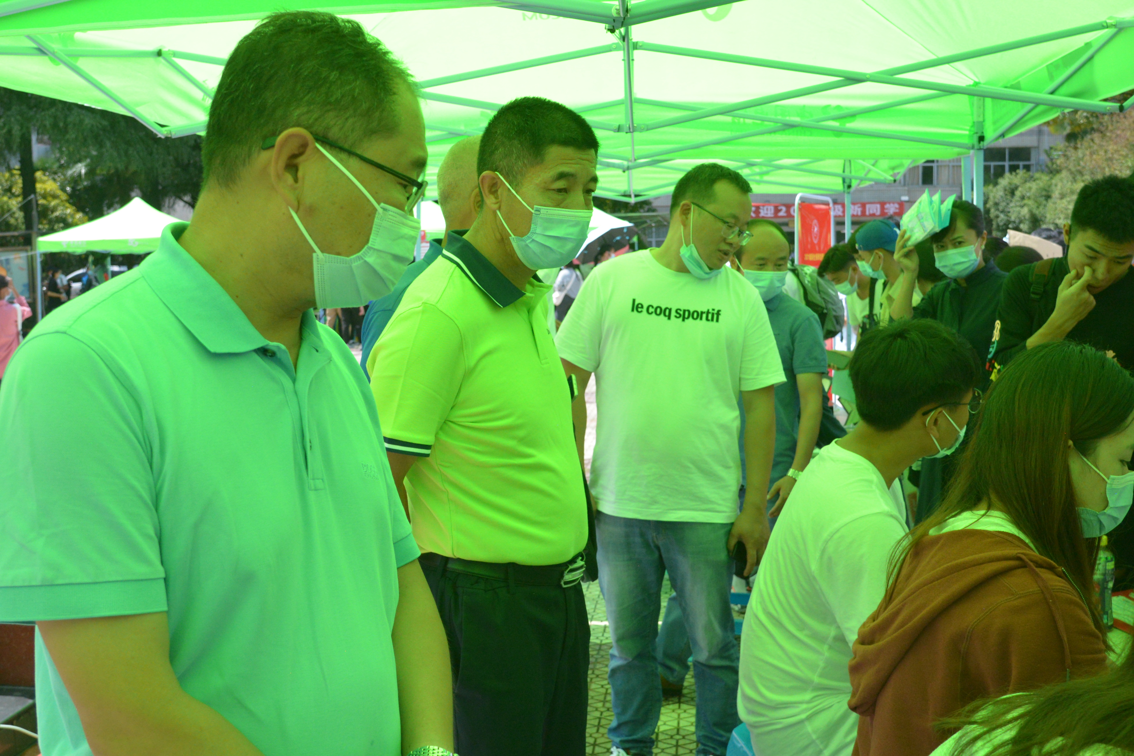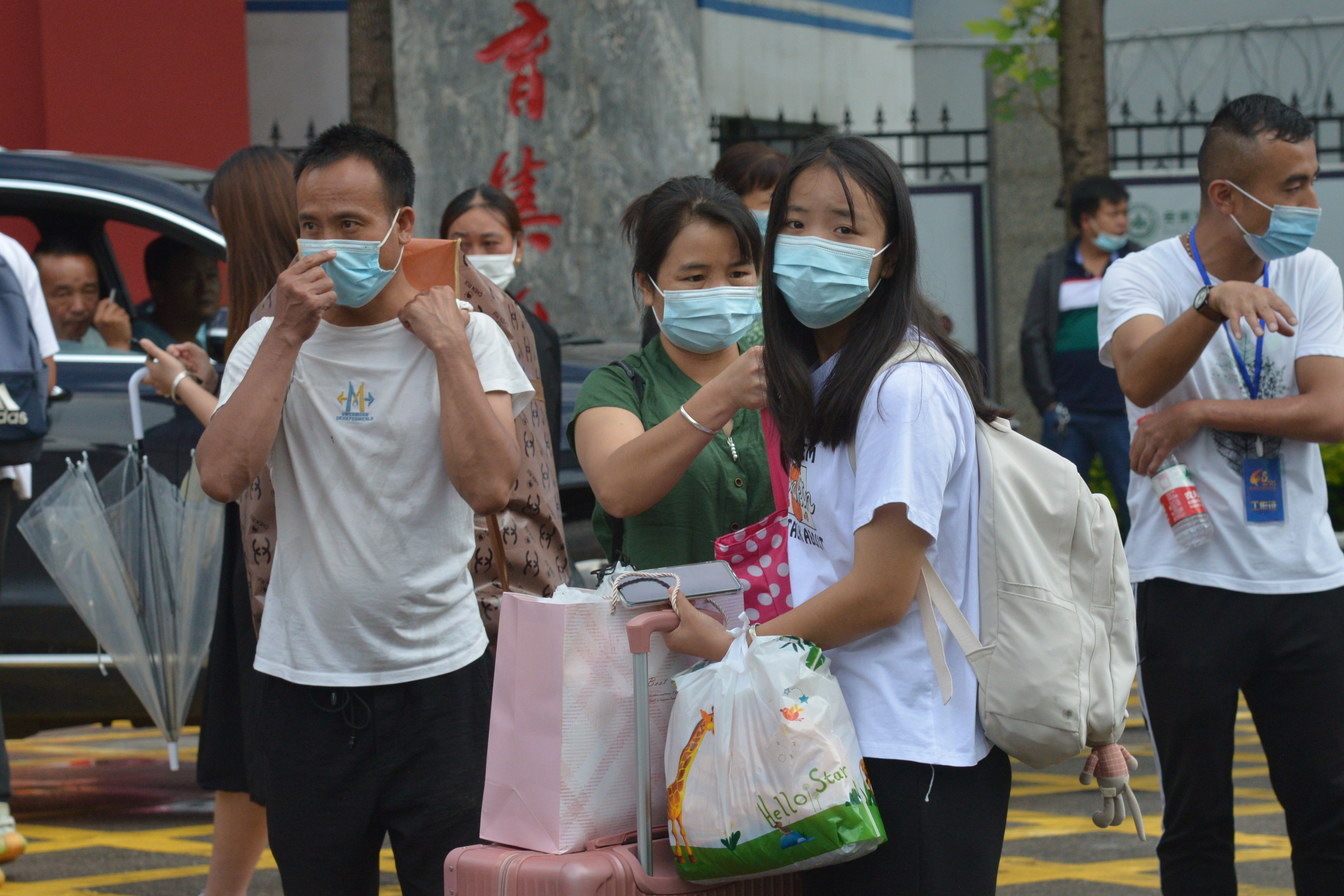 “叔叔阿姨请留步,您放心,把行李交给我们就行!” “同学你好!请出示核酸检测证明、健康码和行程码,测温无异常后进入校门。”“注意脚下,小心积水!报到登记请随我来,这边有序排队……”