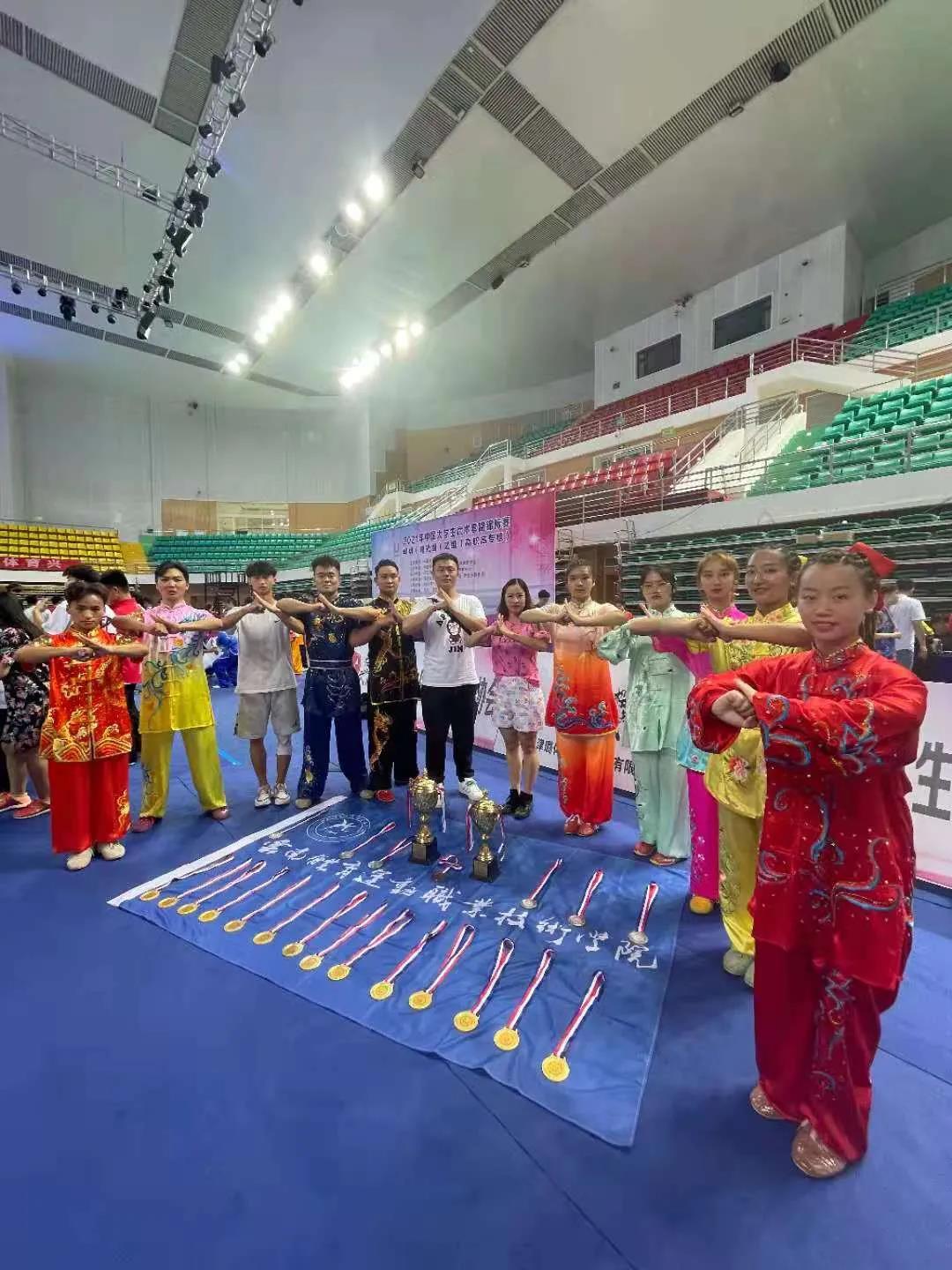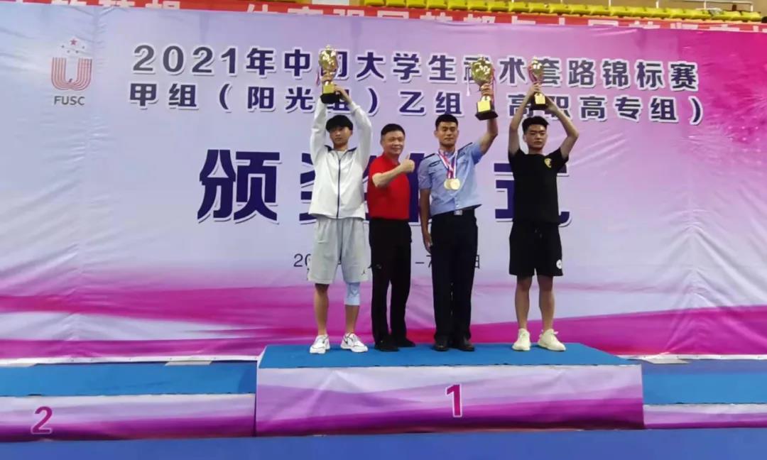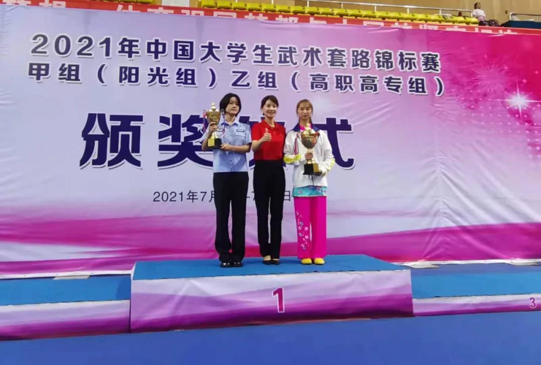2021年7月3日至8日,在河北省迁安市举行的2021年中国大学生武术套路锦标赛上,来自best365中国官方网站的10名参赛运动员(男、女各5名),在所参加的22个项目的角逐中,不畏强手,敢打敢拼,共斩获14枚金牌、6枚银牌、1枚铜牌。其中,罗翠获女子形意拳金牌、形意剑金牌、四段长拳金牌;杨世超获男子形意拳金牌、形意剑金牌、四段长拳金牌;邹兴梅获42式太极拳金牌、42式太极剑金牌、八卦掌银牌;张娴获女子三段短棍金牌、女子四段短棍金牌;左礼伟获男子五段长拳金牌、华拳银牌、对练银牌;刘波获男子三段短棍金牌、对练银牌;冯金迪获女子24式太极拳金牌、32式太极剑银牌;杨雪秧获女子三段长拳金牌、少林拳铜牌;王尧戊获男子对练银牌。同时,获女子团体总分第一名,男子团体总分第二名。