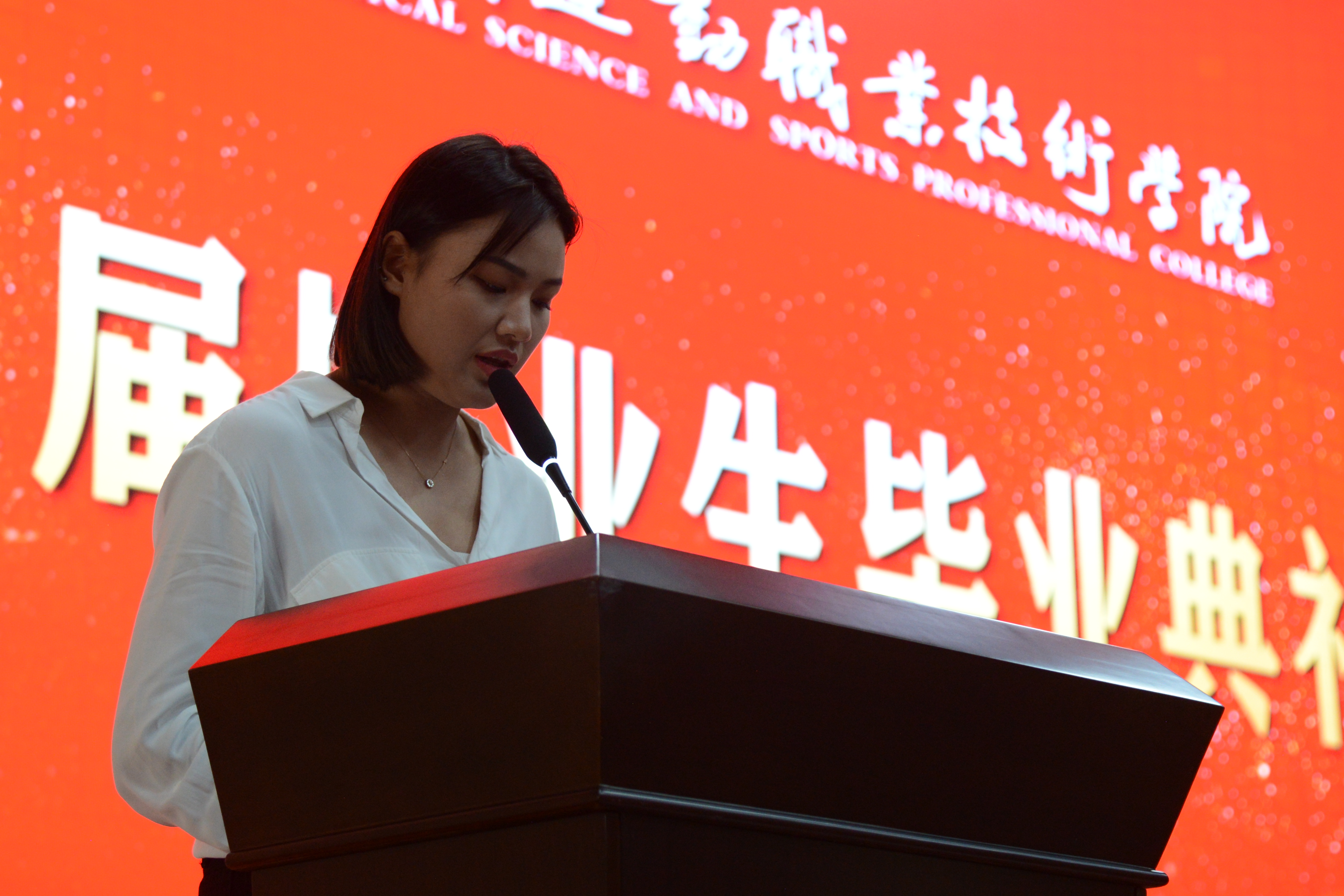 运动训练与教练员学院学生张峪佳代表学生发言。她向学校和老师三年来的辛勤培育表示了衷心的感谢,她表示,在新的旅途中,体职院学子会用实际行动让best365中国官方网站的名字更加响亮。