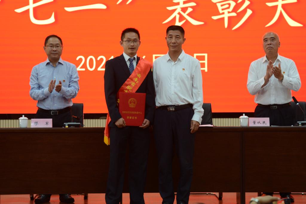 会上,党委副书记、院长代红兵宣读了“两优一先”表彰决定。党委领导班子成员依次为“光荣在党50年”纪念章获得者、云南省脱贫攻坚先进个人、优秀共产党员、优秀党务工作者、先进基层党组织等24人和4个支部颁发证书奖牌。