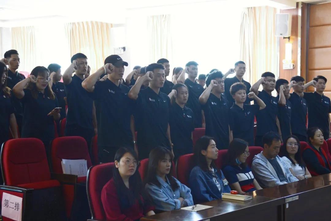 仪式上志愿者代表李茂博和29名志愿者们进行了庄严的支教服务宣誓,接下来他们将前往省内29所乡村小学进行为期60天的篮球支教服务活动。
