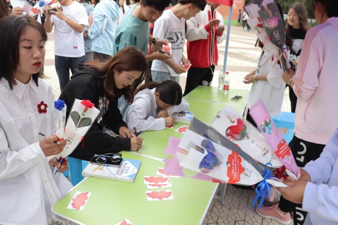 全体师生积极参与活动,活动现场收到鲜花的老师和同学露出了欢喜的笑容。