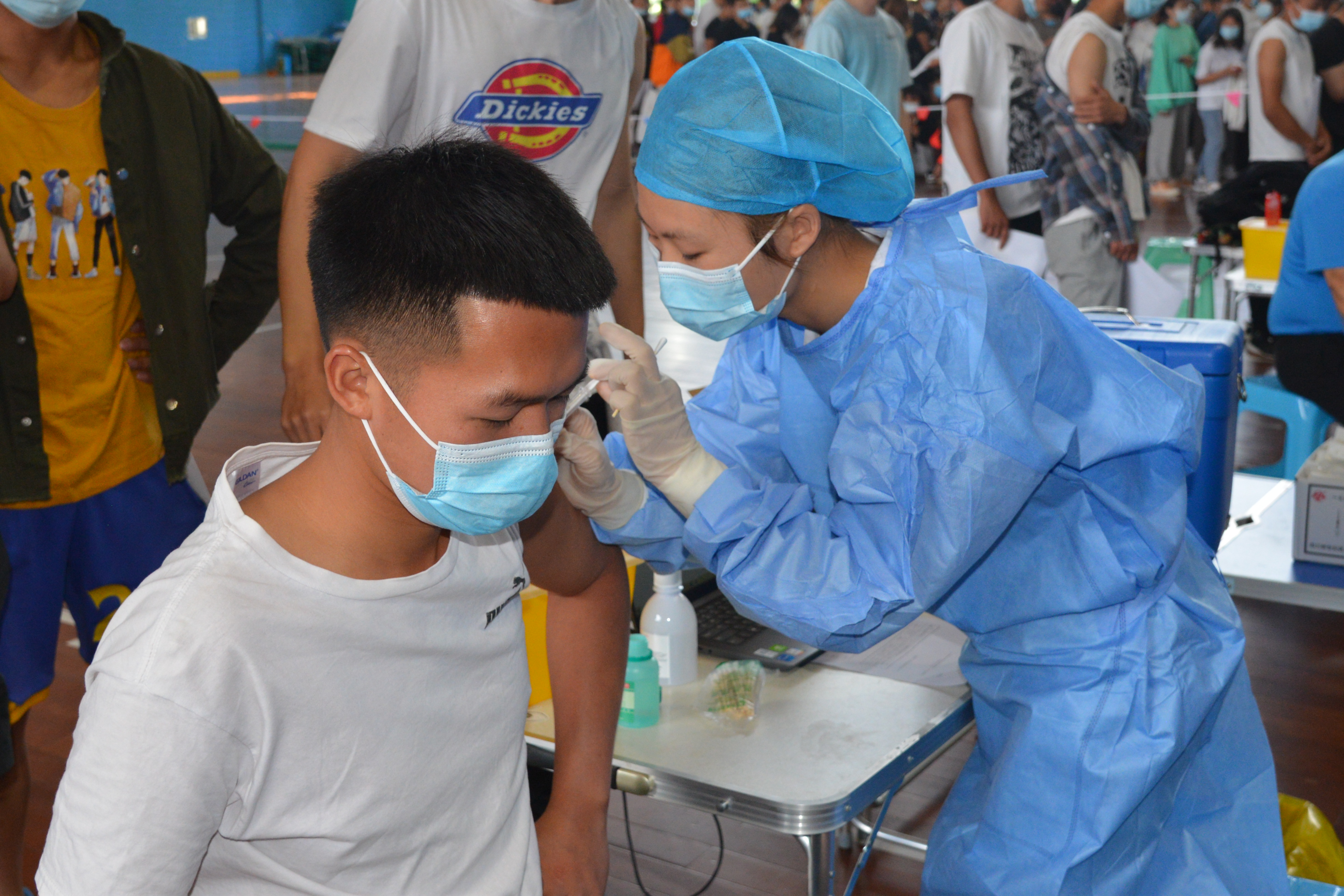 根据国家、省、市、前卫社区卫生服务中心相关工作安排,best365分别于3月31日——4月2日,4月21日分两批次有序开展了新冠疫苗“第一针”的接种工作。疫苗接种点设置在学校室内篮球馆,接种工作由昆明市西山区前卫社区卫生服务中心和学校卫生所共同完成。