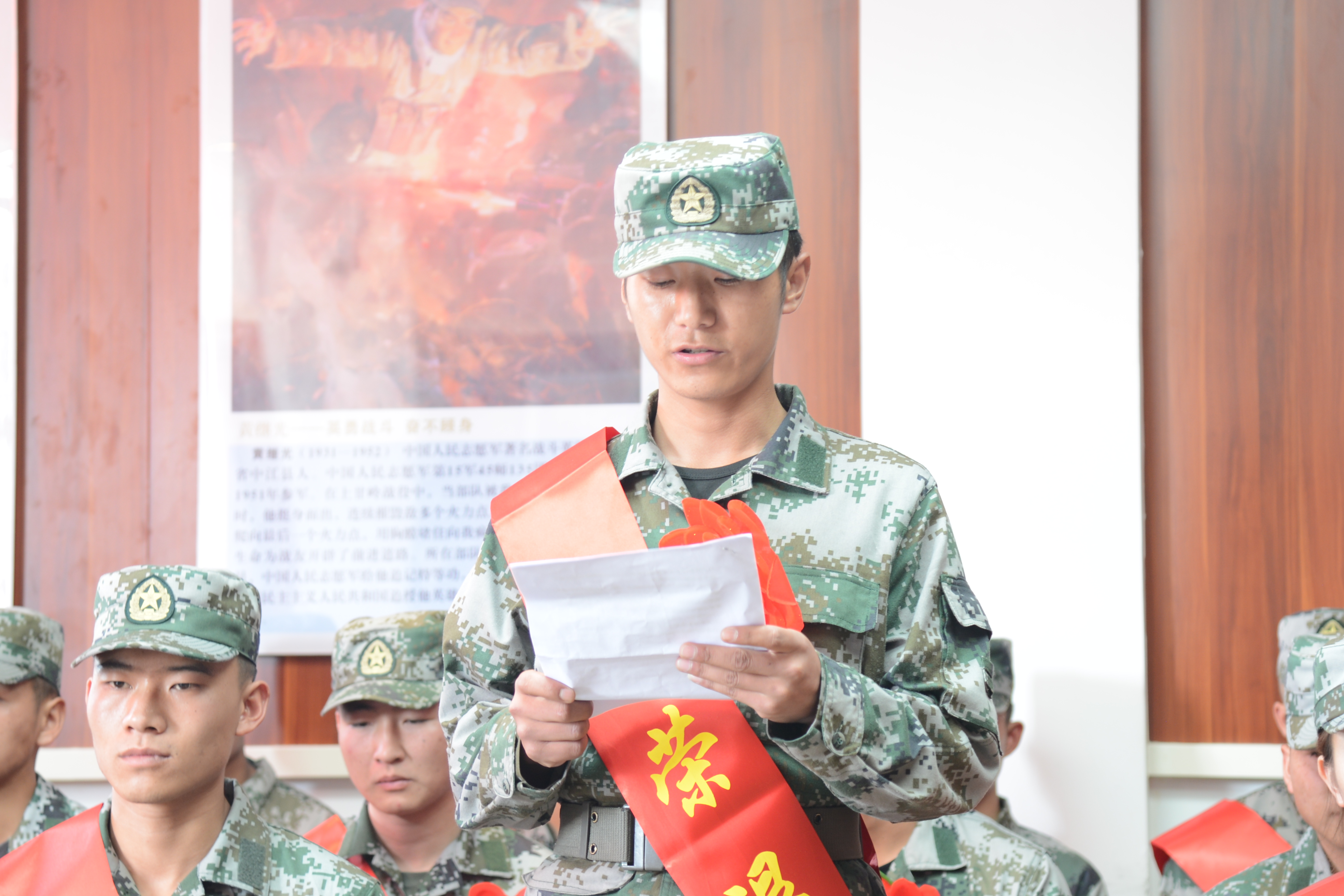 19级社体一班的尼玛七林作为优秀退役士兵代表进行了发言。他分享了自己作为中国人民解放军陆军装甲步兵战士的经历,驾驶过卡车、步战车、坦克;发射过火箭筒、高射炮;挖过战壕埋过雷。哪怕是在春节的深夜,他仍然手持钢枪,独自在哨亭站岗,保卫着祖国神圣的领土。两年的军旅生活带给他的不止是回忆,还有自信与坚定。他表示,复学后他将更加坚定自己的理想信念,更加刻苦的努力学习,发扬部队优良作风,励志退伍不褪色。