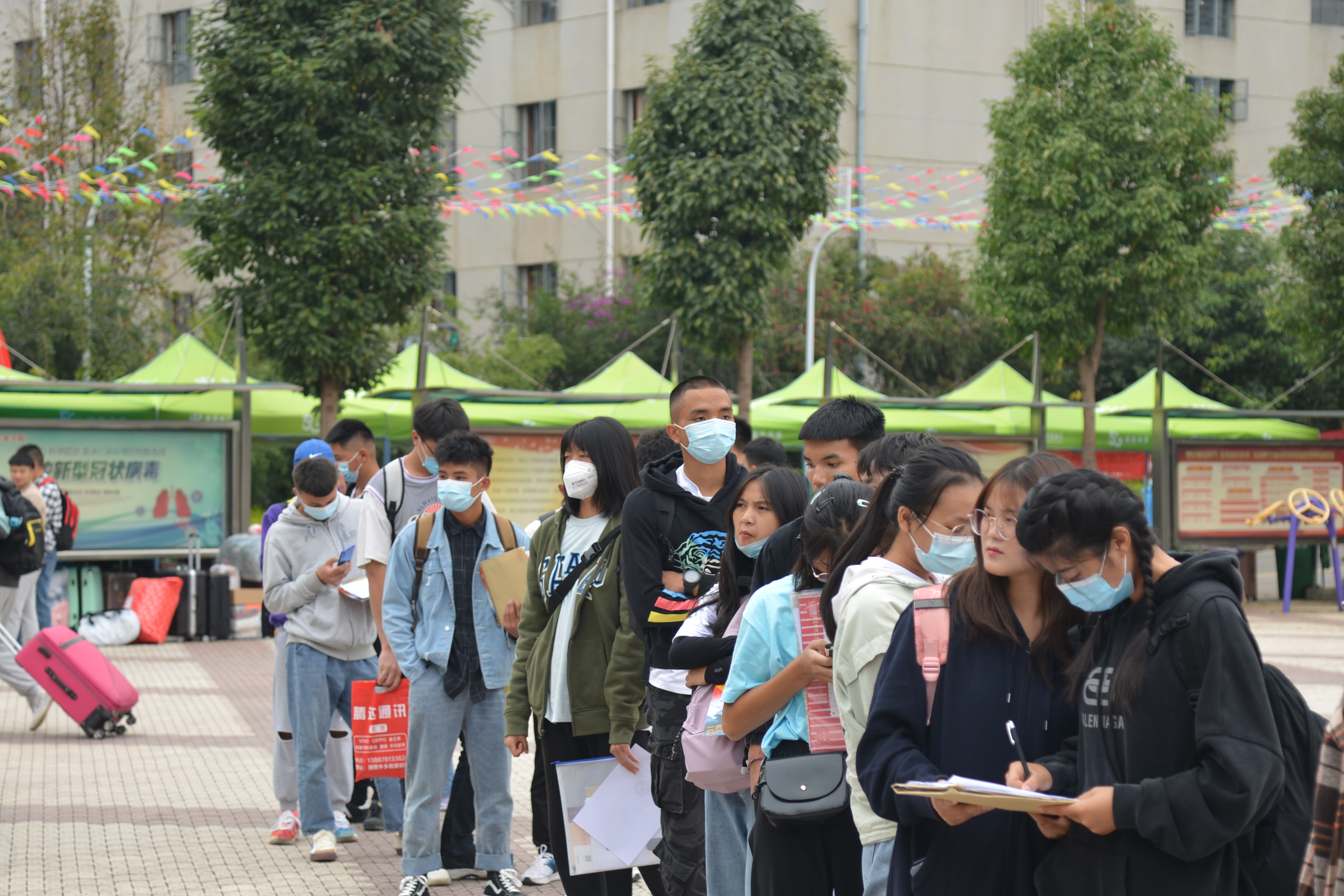 学校为外地抵昆的学生提供了贴心的接站服务,在昆明各大火车站、汽车站设置了新生接站点,组织了新生接待志愿者队伍,派出了接站车。新生抵达学校后,经测体温、扫描“云南健康码”、行李消杀等手续后,前往各服务点办理报到手续。校园内,红色的迎新拱门、横幅展板上热情的标语、迎风招展的彩旗,无一不向新同学透露着欢迎的气息。广场上,各项工作秩序井然,各个二级学院、招就处、学生处、保卫处,计财处等部门在校园广场设置服务点,便捷、高效的完成了新生报到注册工作。