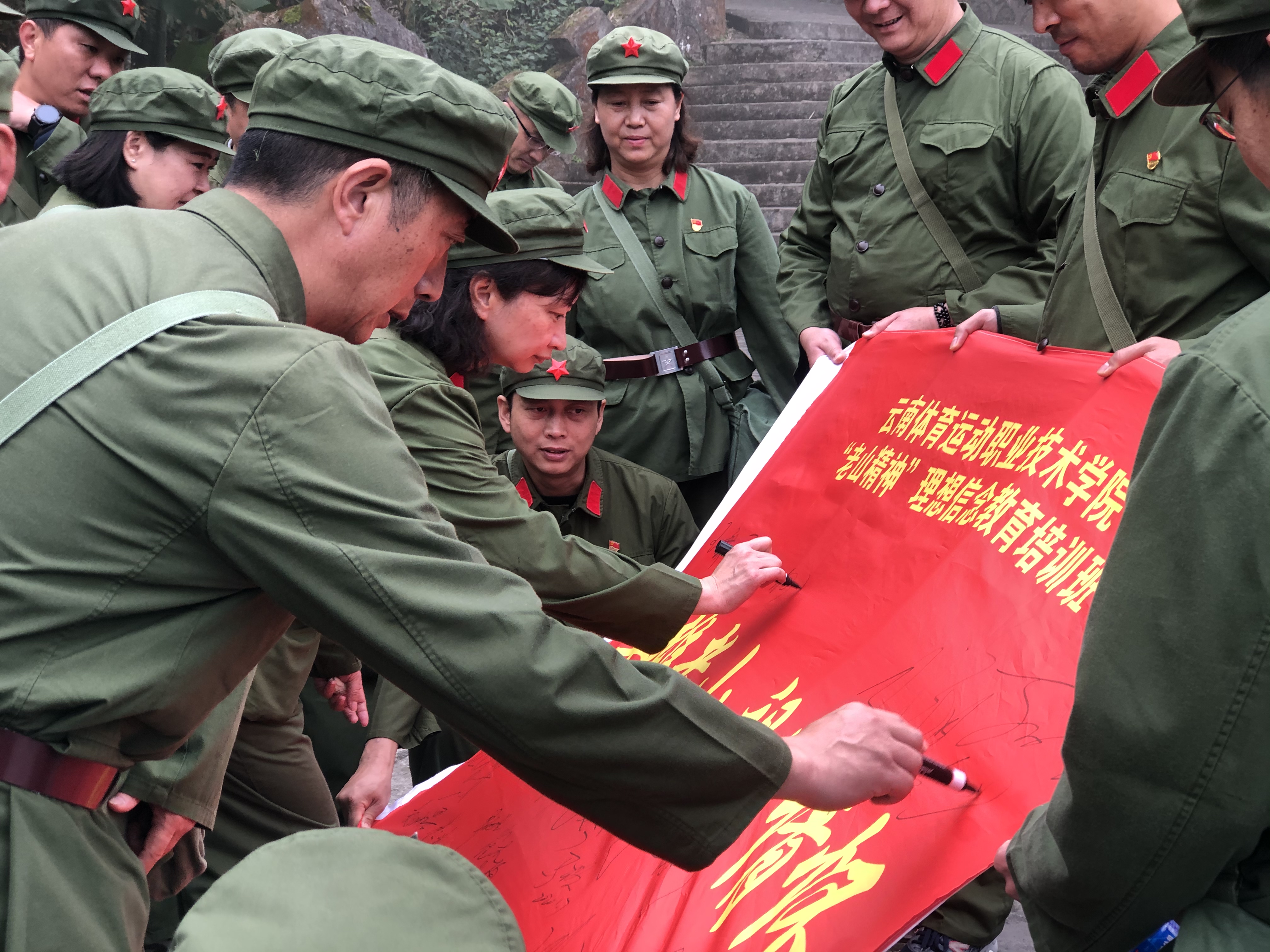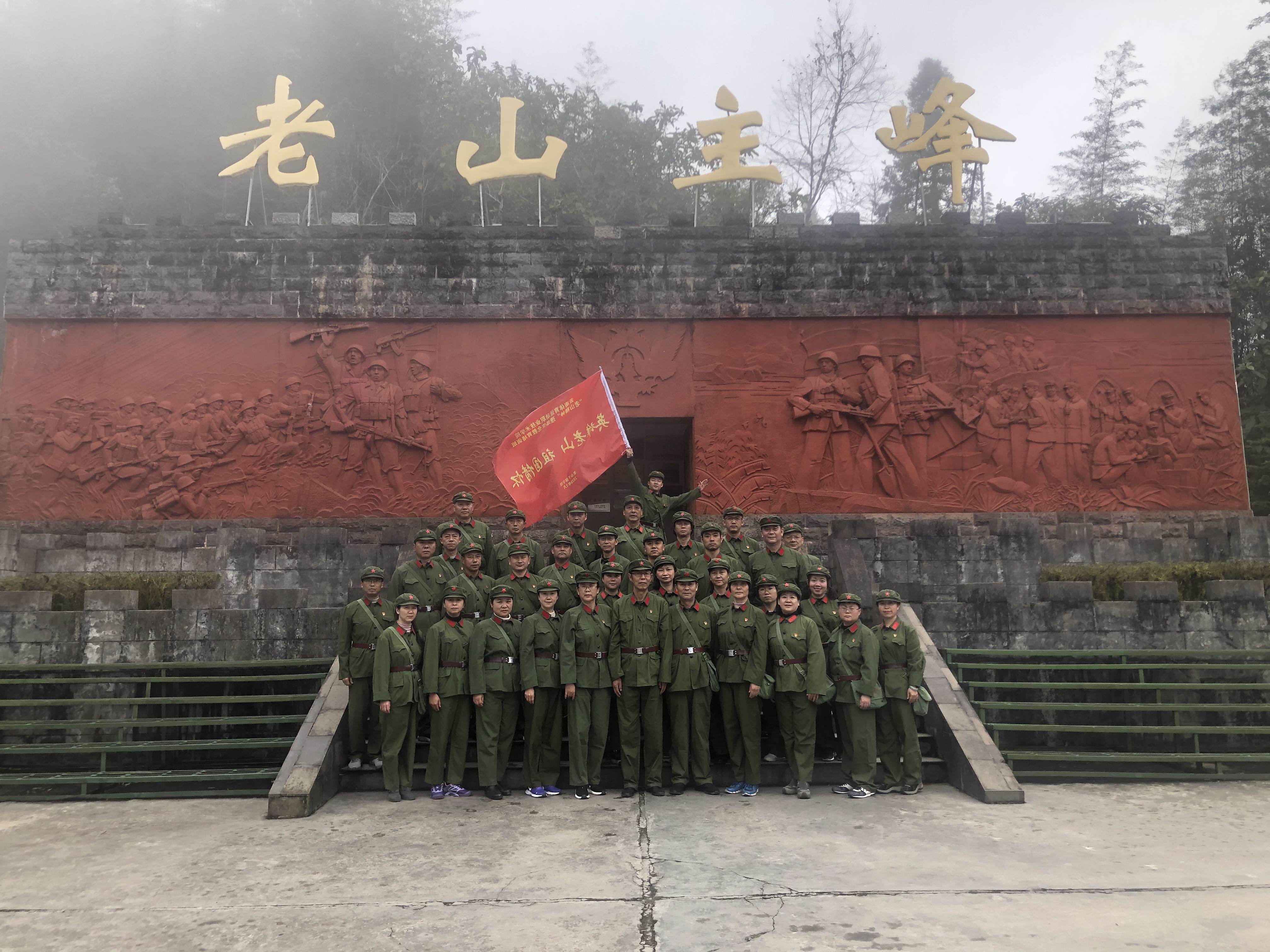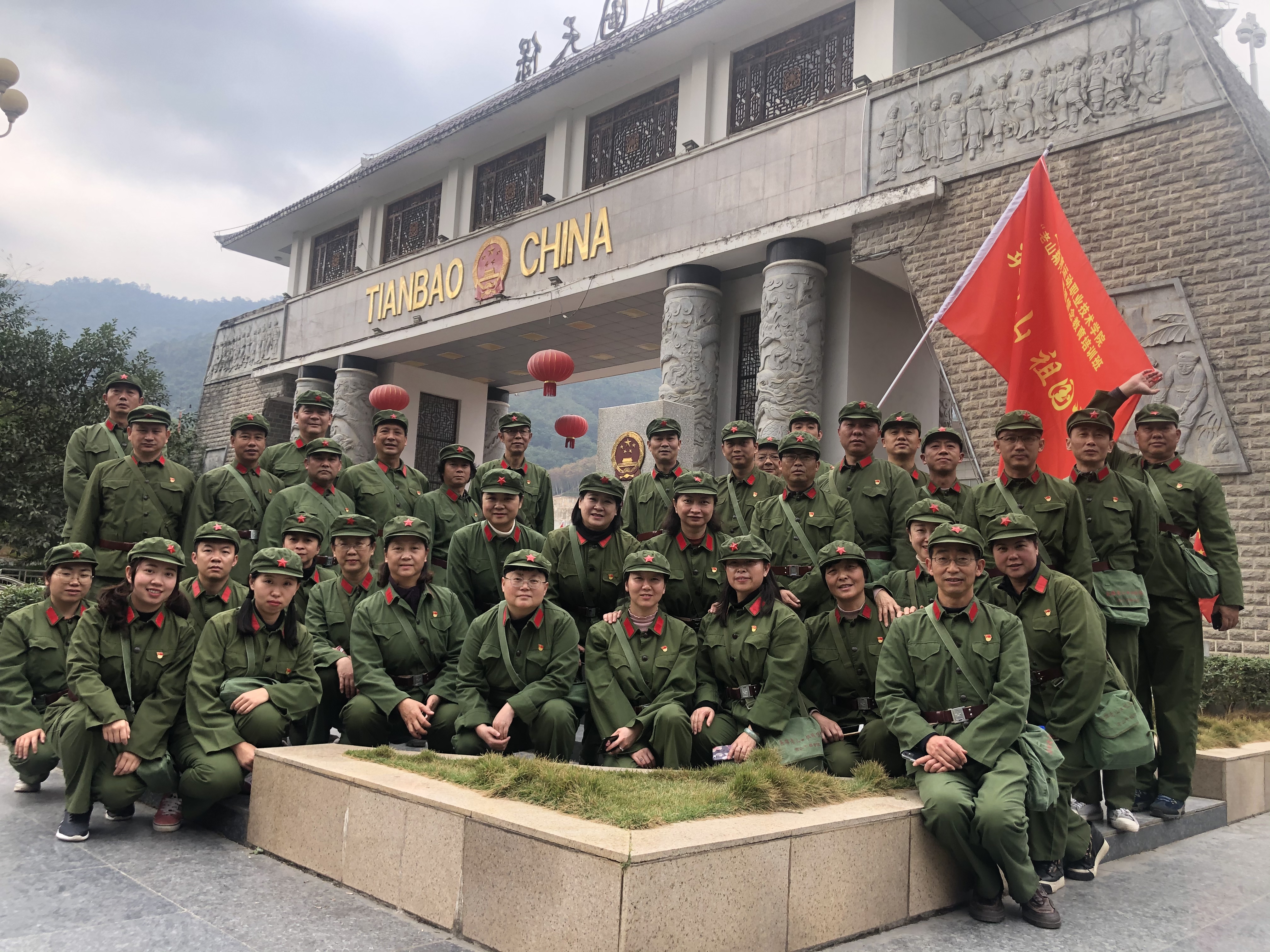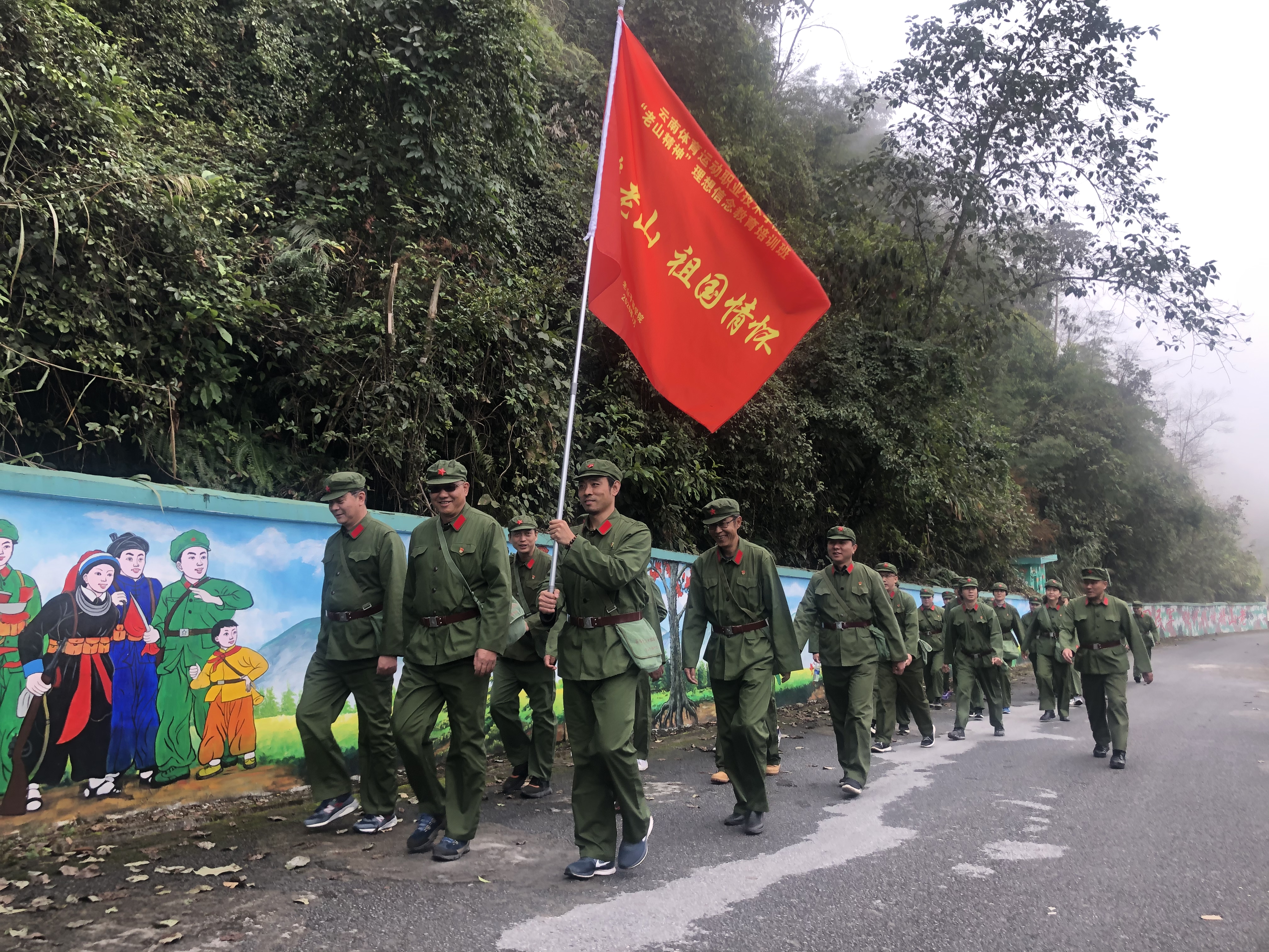 1月7日上午,在庄重的授旗仪式之后,学员们来到了中越边境——天保口岸。老山干部学院带队老师为学员们讲述了天保口岸悠久的历史沿革和重要的战略地位,学员们为伟大祖国的繁荣昌盛由衷自豪。下午,学员们意气风发地朝着老山主峰革命教育基地进发。在老山主峰,学员们先后进行了“百米徒步行军”“参观老山主峰战场遗址”等情景体验式教学,感悟老山“无私奉献、精忠报国”的革命英雄主义精神。在红歌林集体颂唱老山红歌《血染的风采》,并进行连旗签名及合影留念。参训学员身临其境地感受了战争的艰辛与残酷,进一步激发了广大学员爱岗敬业、报效国家的热情。