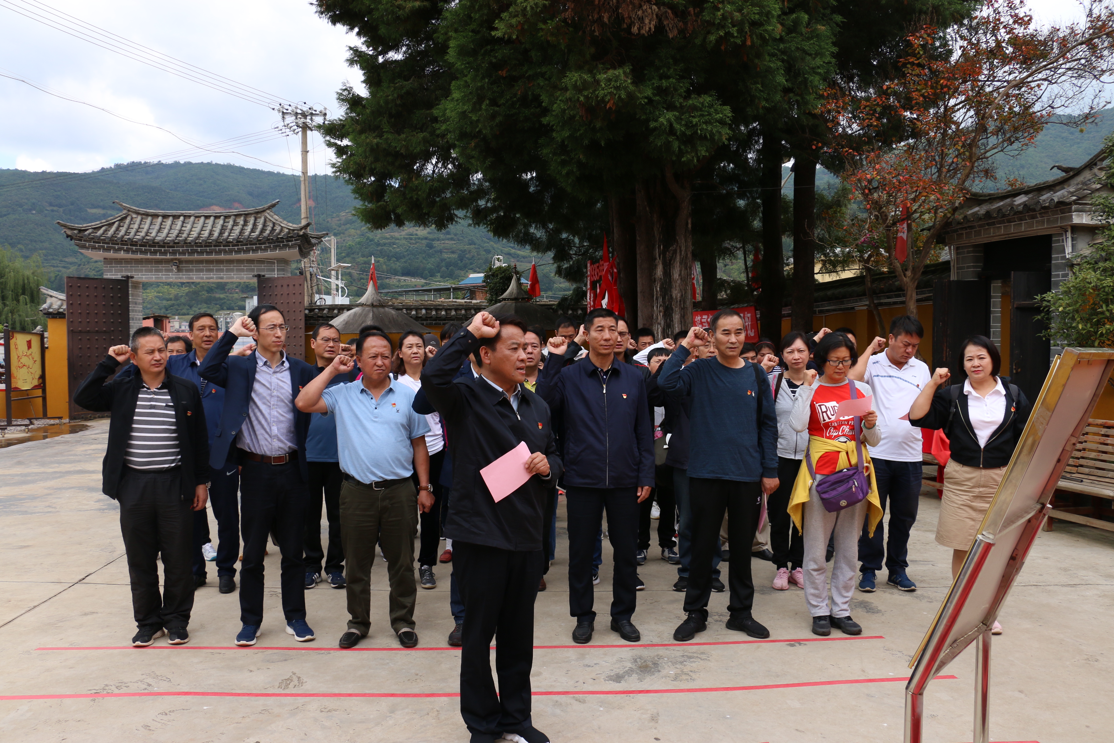 重温入党誓词,不忘初心使命。到达柯渡红军长征纪念馆后,学院党委书记陈麟同志带领全体党员面对党旗重温入党誓词,全体党员高举右手郑重宣誓,庄严地重温了入党誓词。