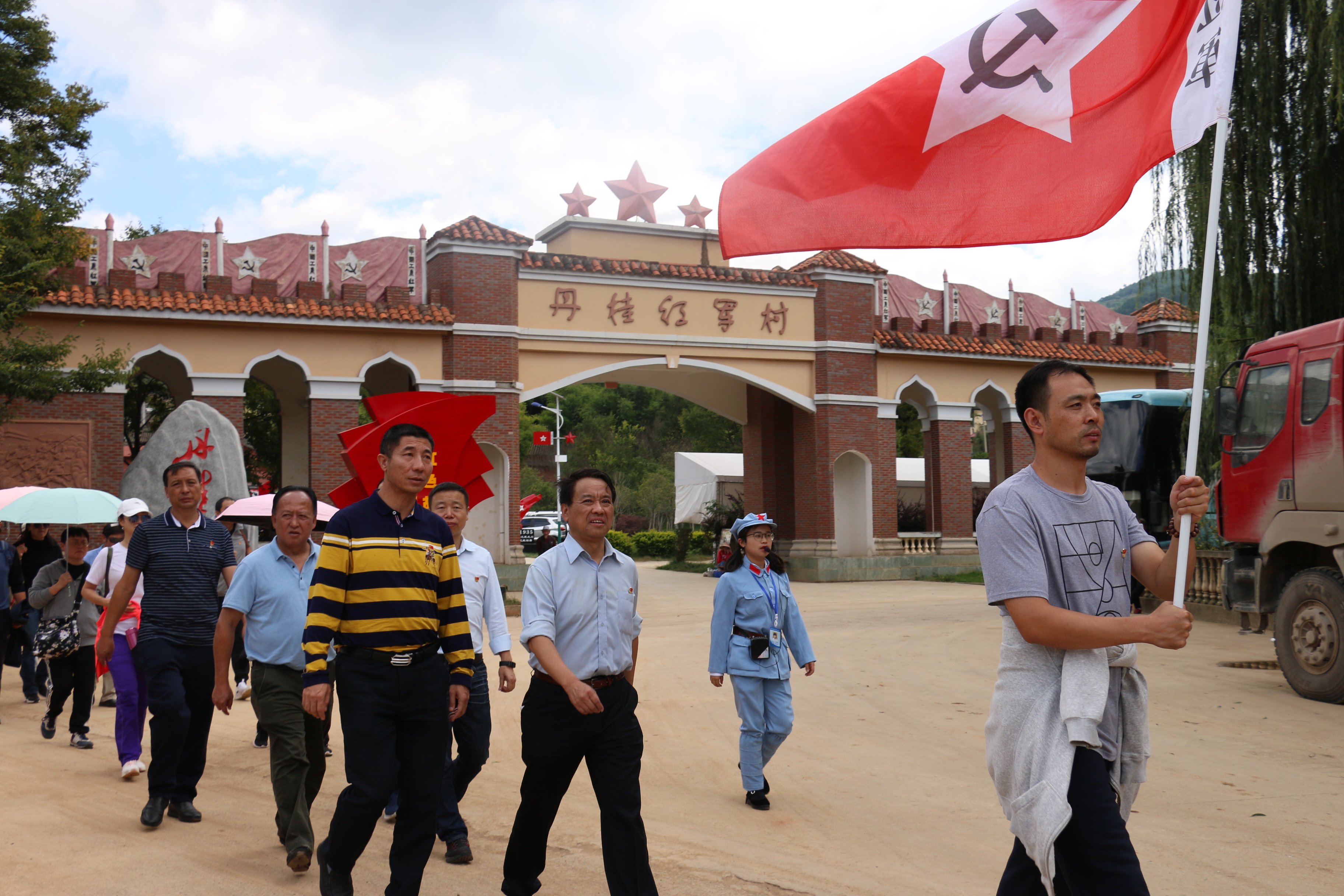 重走长征路,接受红色洗礼。最后,全体人员沿着红军当年的足迹,重走长征路。鲜艳的党旗飘扬在队伍最前方,军旗、校旗紧随其后,尽管烈日当空、山路崎岖,大家依旧热情高涨,精神抖擞,一路前行,一步步用心体会着当年红军长征途中的艰辛不易。