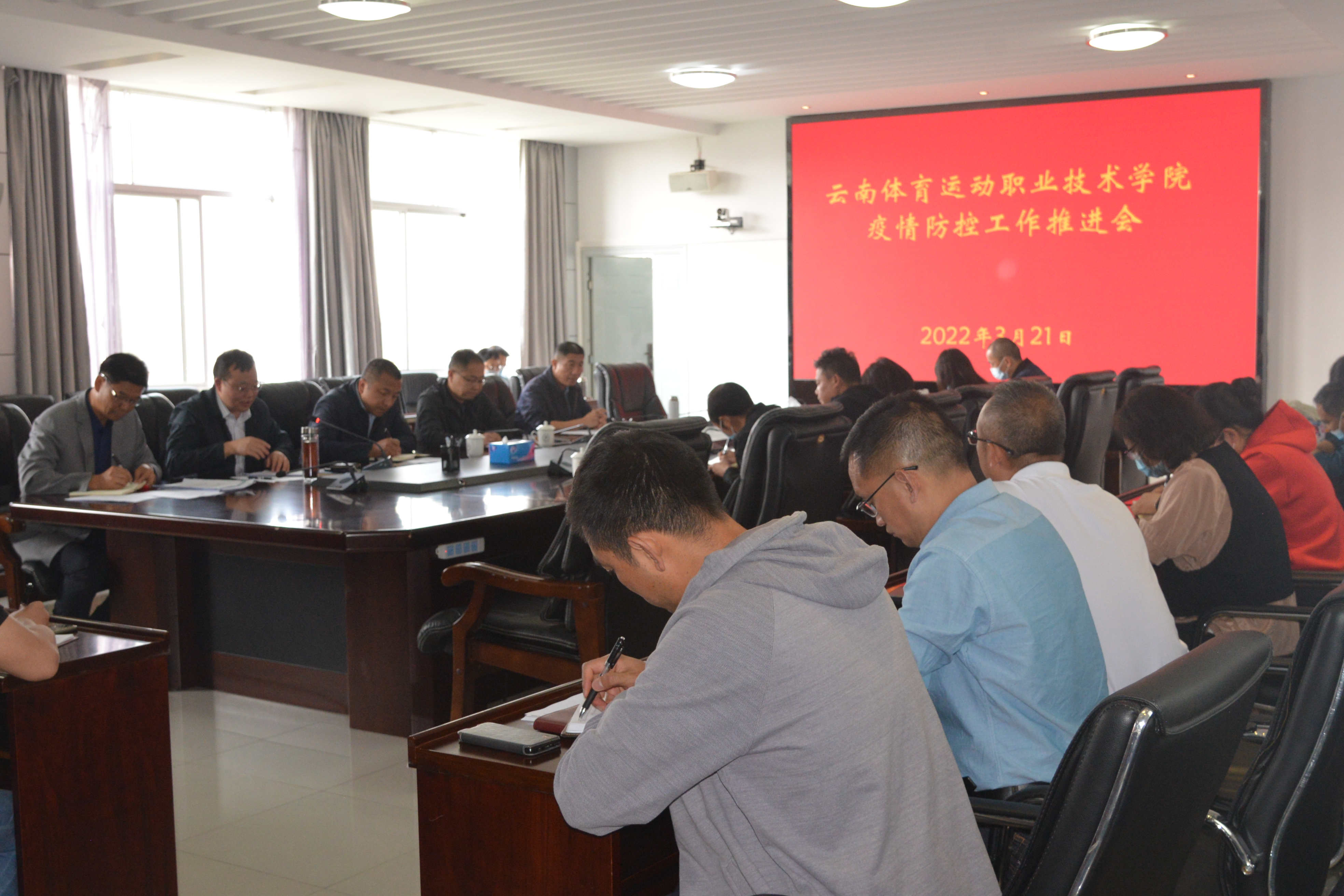 会议传达学习了习近平总书记在3月17日中共中央政治局常务委员会会议上部署从严抓好疫情防控工作的重要讲话精神,传达了省委省政府应对疫情工作领导小组指挥部3月18日召开的全省疫情防控工作视频调度会工作要求,传达了省教育厅关于近期校园疫情防控明察暗访发现问题的情况通报,集体学习了《云南省高等学校近期新冠肺炎疫情防控重点事项技术指南》。会议要求各部处室、二级学院、中心要进一步把思想和行动统一到习近平总书记重要讲话精神上来,坚决守住不发生校园聚集性疫情底线,牢记“坚持就是胜利”,坚定信心,坚持不懈,坚持师生至上、生命至上,坚持科学精准,努力用最小代价,实现最大防控效果。