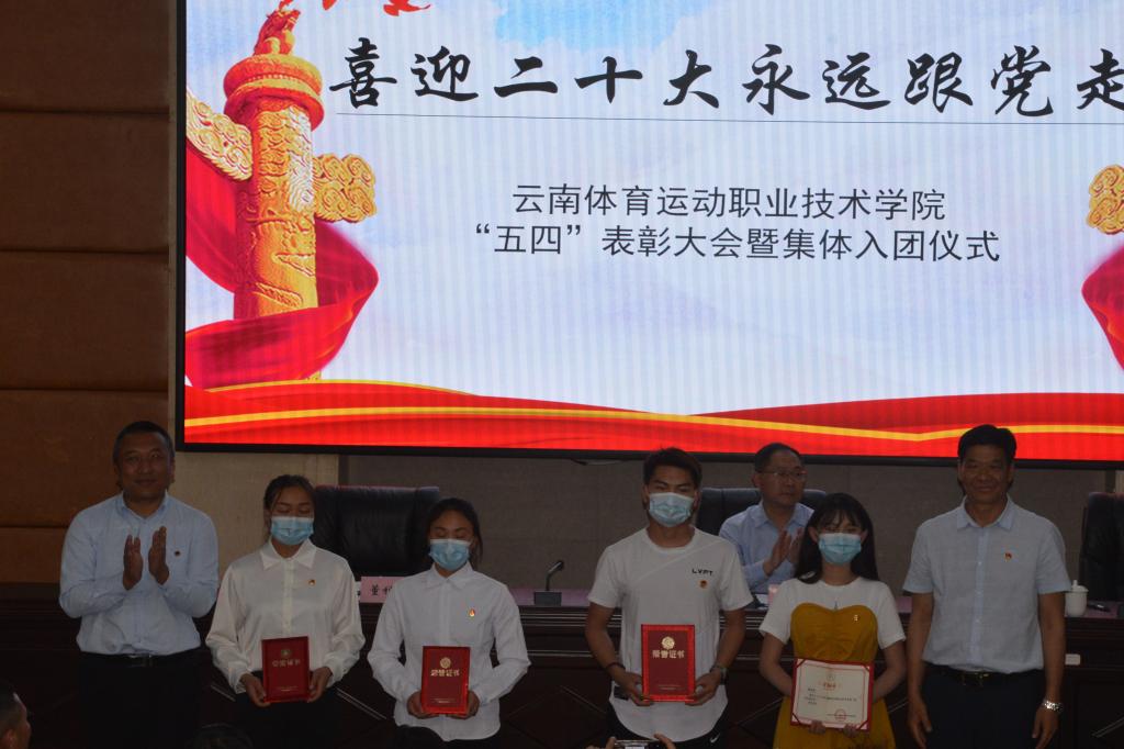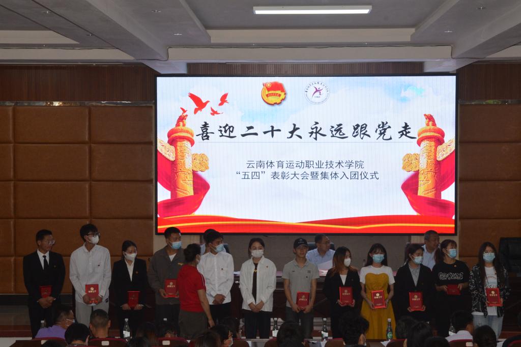 优秀共青团干部代表、新老团员代表分别上台发言。他们表示,身为共青团员,要积极展现青年强国有我的担当,用智慧和汗水奏响青春乐章,团结同学,传承并发扬“五四精神”,不断加强政治理论武装、学好科学文化知识,用实际行动实现入团誓言,用青春擦亮梦想的底色。