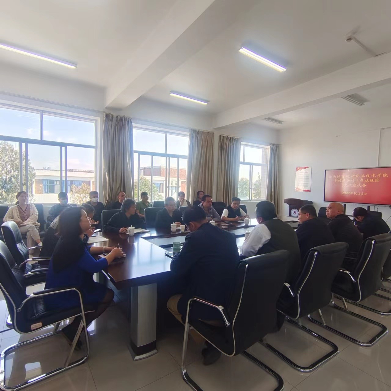 2022年10月5日上午,学校在云帆楼四楼第二会议室召开乡村振兴对口帮扶经验交流座谈会,党委书记缪军,党委副书记张永和,党委委员、副院长董从民、董利民出席会议,学校组织部负责人、历年下派挂职、驻村驻社区工作队员出席会议。
