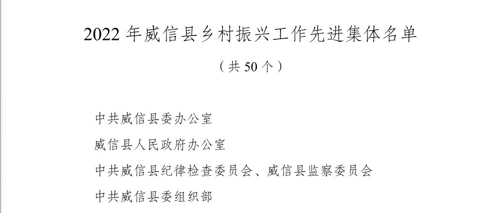 近日,威信县委印发《中共威信县委 威信县人民政府关于表彰2022年威信县乡村振兴工作先进集体和先进个人的决定》(威发〔2023〕5号),best365驻威信县长安镇安乐村工作队获评“2022年威信县乡村振兴工作先进集体”。