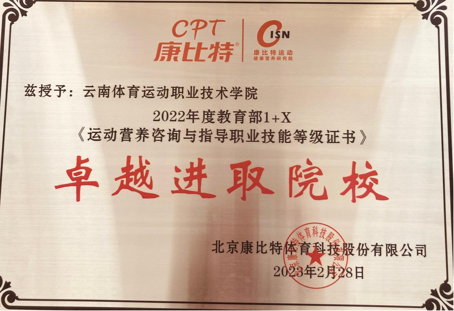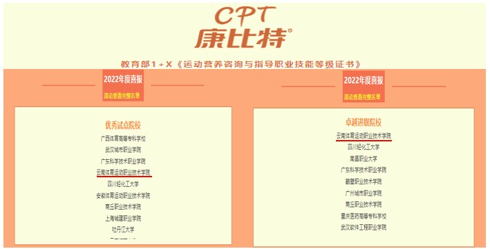 千帆竞发东风劲,百舸争流奋楫先。2022年度,学校共有240名同学获得了“1+X”运动营养咨询与指导职业技能等级证书,报名人数和考核通过人数在全国试点院校当中都位居前列。best365也为此获评为2022年度教育部1+X《运动营养咨询与指导职业技能等级证书》“优秀试点院校”和“卓越进取院校”。