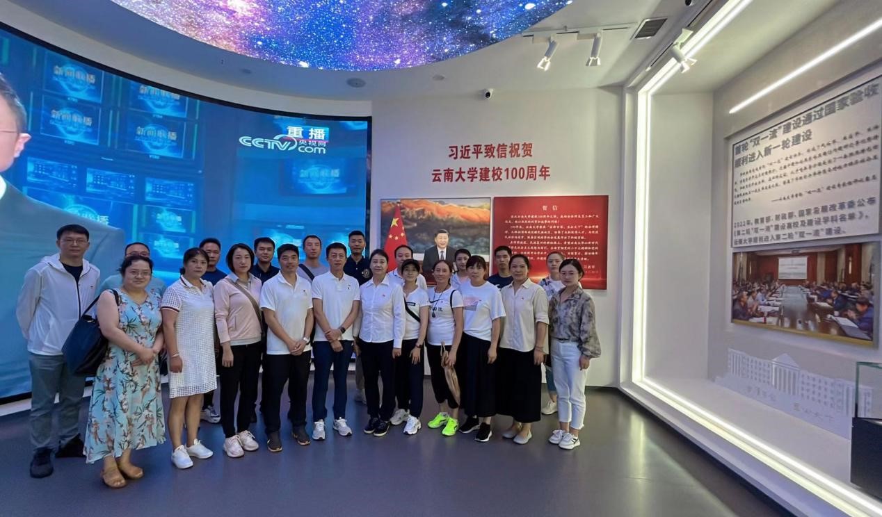 在云南大学校史馆,全体人员深入了解了云南大学的历史文化底蕴,百年发展历程、学科体系特色和校园建设情况,重温习近平总书记致云南大学建校100周年贺信精神与深入开展学习贯彻习近平新时代中国特色社会主义思想主题教育相结合。