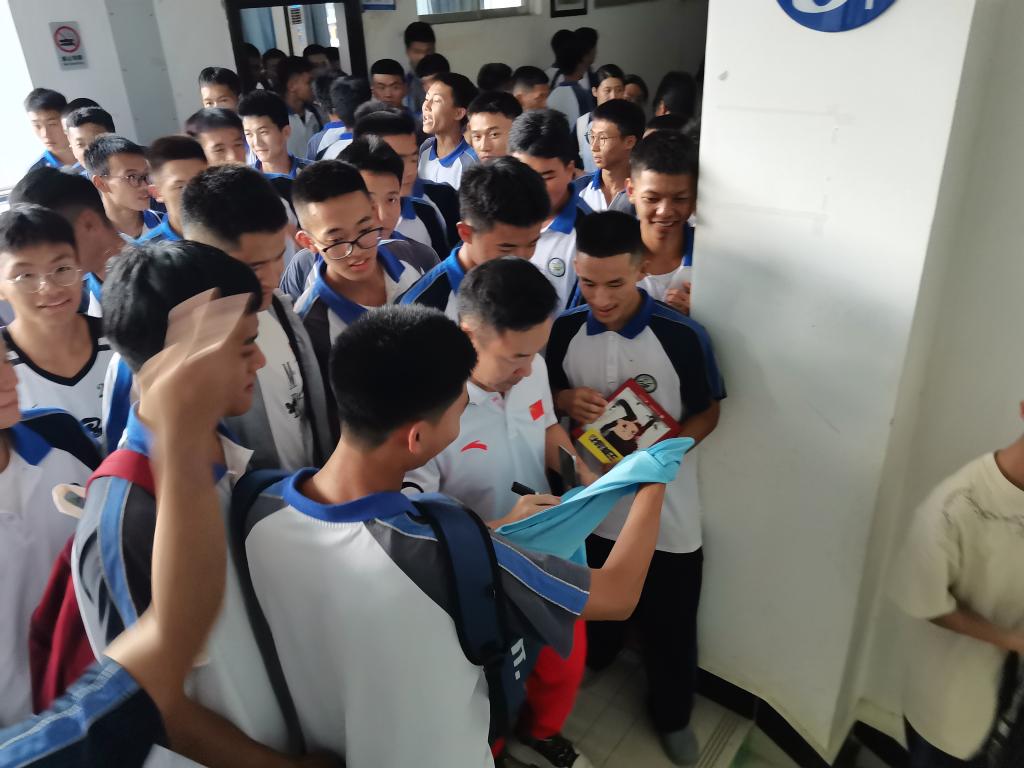 演讲结束后,郭伟阳与在场的同学们进行了热烈地互动,化身暖心的大哥哥积极回答同学们的提问,并把100余本他编著的书籍《王牌替补》送给同学们,收到书的同学们纷纷“围堵”在郭伟阳的身边,请奥运冠军签名。