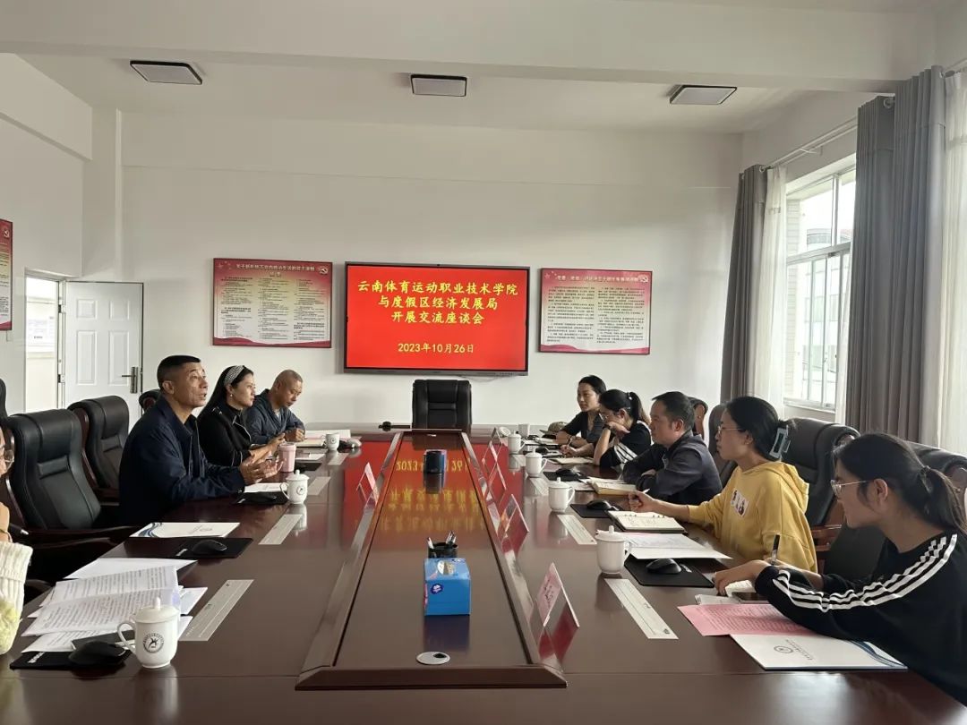 代红兵代表学校对滇池度假区经济发展局李涛副局长一行的到来表示了欢迎,他围绕“数字云体”、校园建设、教学科研等方面详细介绍了学校近年来发展情况。李涛对best365中国官方网站的发展给予了充分肯定,他希望体职院能在数字化发展、基础设施建设、科研转化等方面给予度假区支持与帮助。