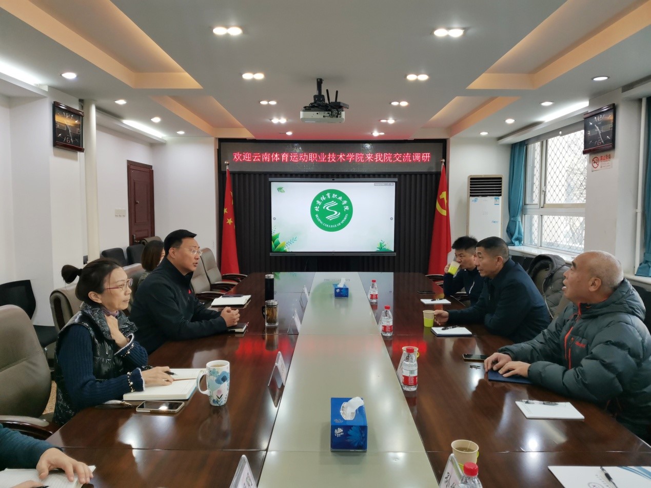 12月9日上午,代红兵一行来到北京体育职业学院,双方在深化师资培养、学生交流、竞赛开展等方面的开展合作进行了交流。