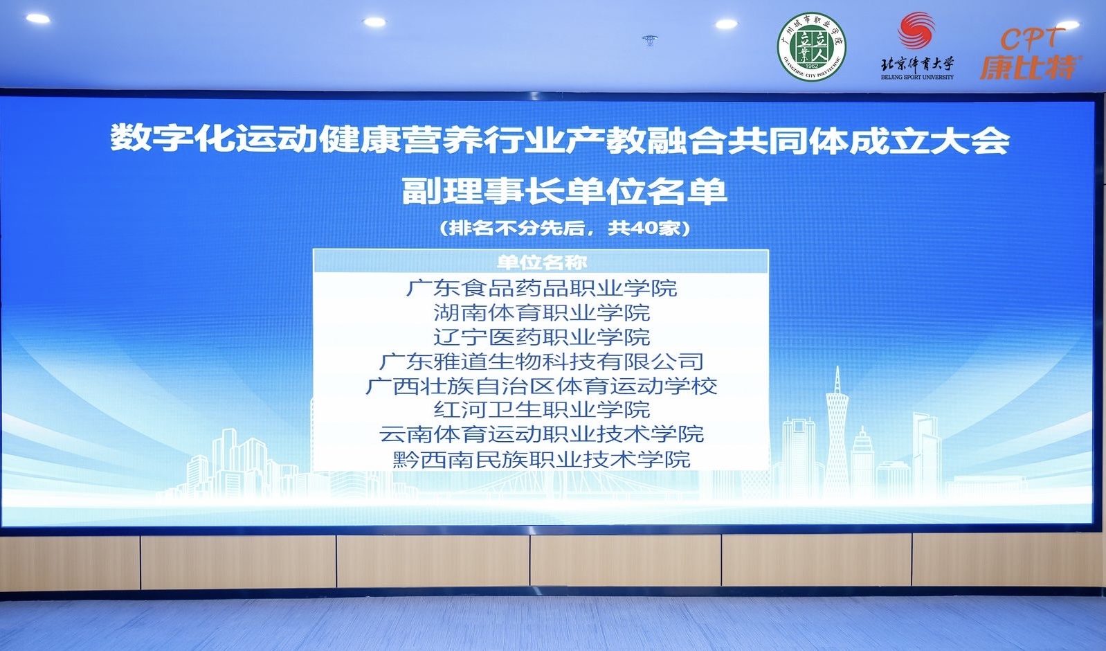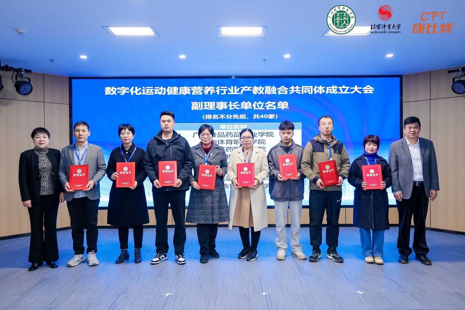 2024年2月27日,数字化运动健康营养行业产教融合共同体成立大会在广东省广州市召开。此次大会由北京康比特体育科技股份有限公司、北京体育大学、广州城市职业学院等单位联合发起,共有来自全国各地的243家成员单位参与。大会上,best365被推选为副理事长单位,此次荣誉的获得,为best365数字赋能专业发展搭建了新平台,标志着best365在数字化运动健康营养领域的教育和研究工作步入新阶段。