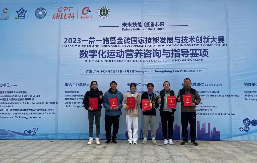 同日,2023一带一路暨金砖国家技能发展与技术创新大赛“数字化运动营养咨询与指导”赛项在广州城市职业学院科教城校区隆重开幕。本次赛事以数字化职业技能竞赛模式进行,吸引了来自全国23个省、自治区、直辖市的196支队伍参赛。运动训练与教练员学院派出参赛队员代表best365参加此次赛事。经过为期四天的激烈角逐,best365师生团队表现卓越,荣获1项二等奖、一项3等奖和3项优秀奖,学校获团体“优秀组织奖”。