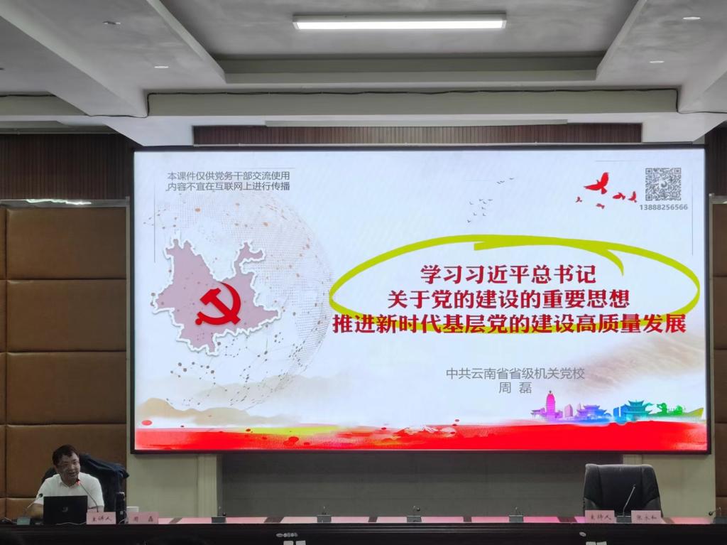 校领导带头讲党课,党委书记缪军以《自觉用党规党纪校正思想和行动,为推进学校高质量发展提供坚强纪律保障》为题讲授专题党课,纪委书记金吉斌以《自觉学纪知纪明纪守纪,切实增强不想腐的自觉》为题讲授专题党课。同时邀请了省委党校白婧副教授围绕习近平总书记关于党的自我革命的重要思想作专题辅导、省委省直机关工委机关党校教研部主任周磊围绕习近平总书记关于党的建设的重要思想作专题辅导,云南师范大学马克思主义学院张悦教授围绕习近平总书记关于教育的重要论述作专题辅导。