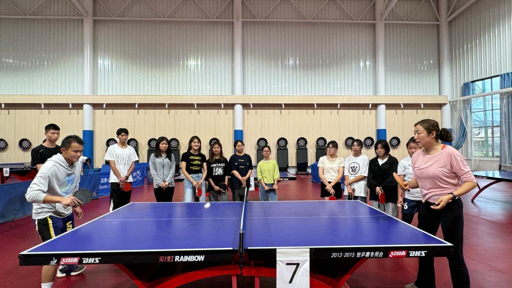 活动第二环节——趣味小游戏。学业导师精心设置了“限时颠球”“组队接力球”“混双实战”三个有趣的游戏融入课堂中,既增添了课堂活跃度,也激发了同学们的积极性。在热烈的氛围中,同学们不仅学习了乒乓球的基本技巧,体验到了团队合作的力量和竞技的乐趣,还让大家在乒乓球运动中结识了新的朋友,拓宽了人际交往的圈子。