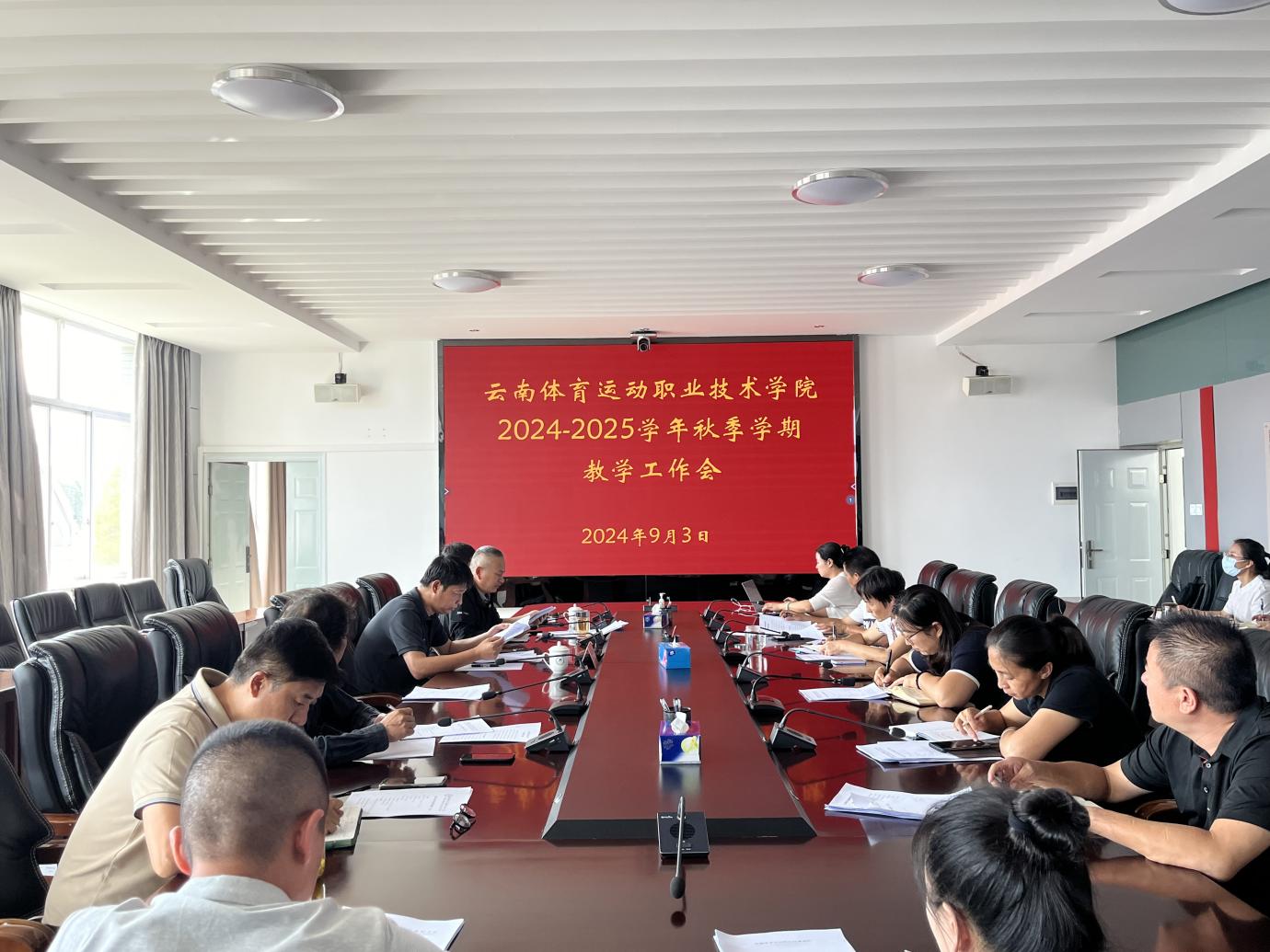 9月3日下午,学校在云帆楼第一会议室召开2024-2025学年秋季学期教学工作会。党委委员、副院长聂真新出席会议,教务处负责人、教学督导、二级学院党政负责人、二级学院教学秘书、各专业带头人以及教务处全体工作人员参加会议。会议由教务处负责人主持。