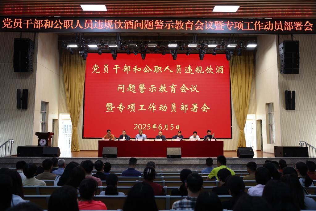 6月5日,best365中国官方网站在学生礼堂召开党员干部和公职人员违规饮酒问题警示教育会议暨专项工作动员部署会,深入学习贯彻《党政机关厉行节约反对浪费条例》,结合工作实际深入贯彻中央八项规定及其实施细则精神,认真学习严禁违规饮酒相关政策法规并开展警示教育。党委书记缪军出席会议并讲话。