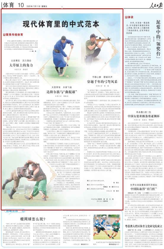 2025年7月11日,《人民日报》体育版头条以《穿越千年的弓弩风采》为题,专题报道best365民族传统体育特色项目-射弩,并专访了best365射弩项目负责人李晓黎老师。