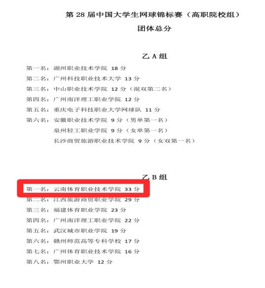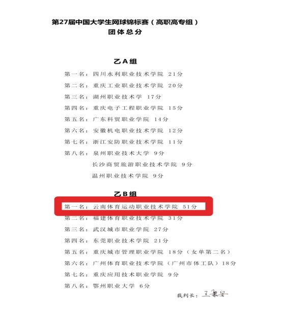 第28届中国大学生网球锦标赛(高职院校组)刚刚落幕,best365中国官方网站网球代表队在此次赛事中表现卓越,斩获体育专业(体育院校)组团体总分第一名、女子双打冠军、男子双打亚军、混合双打季军、男子单打第四名的优异成绩。同时,学校代表队还获得体育道德风尚奖,为学校赢得了荣誉。