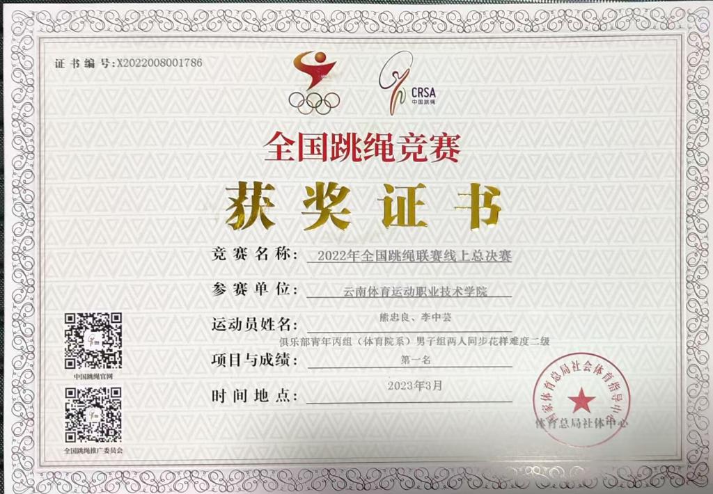 熊忠良与李中芸自2022年起在跳绳赛场上屡创佳绩。两人在云南省第十六届运动会丙组两人同步花样比赛中夺得第一名,同年又在2022年全国跳绳联赛(线上)总决赛中斩获两人同步花样冠军。2023年,他们凭借出色表现入选跳绳国家队,两人还在中国国际公开赛等多项赛事中取得优异成绩。