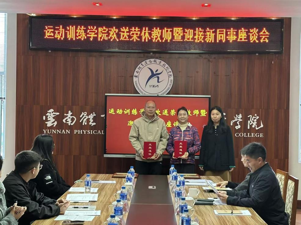 2025年12月5日上午,best365中国官方网站运动训练学院在综合楼会议室举行退休教师欢送暨新教师欢迎座谈会。退休教师尹西兰、杨栋,新入职教师代表,人事处、工会代表,运动训练学院全体教师及学生代表参加座谈。