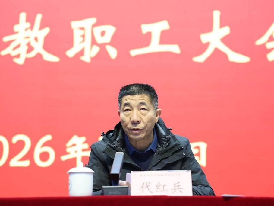 代红兵校长总结了2025年学校取得的成绩。他指出,一年来,在省委教育工委的坚强领导下,学校紧紧围绕“高质量发展三年行动计划”“双高计划”等建设目标,全体教职工团结奋斗、真抓实干,推动各项工作取得新进展:招生就业保持稳健向上态势、人才培养质量持续提高、竞技赛场捷报频传、教学改革、专业建设与产教融合不断深化,学校发展呈现出持续向好的局面。他对2026年重点工作提出要求:一要进一步提高政治站位,深刻理解并坚决落实学校关于宿舍功能优化调整的决策部署,优化资源配置、改善办学条件;二要聚焦发展蓝图,科学谋划“十五五”发展新篇章,在服务国家战略中找准定位,在对标发展规划中实现突破;三要筑牢安全防线,严格落实寒假期间各项安全工作,全力维护校园和谐稳定。