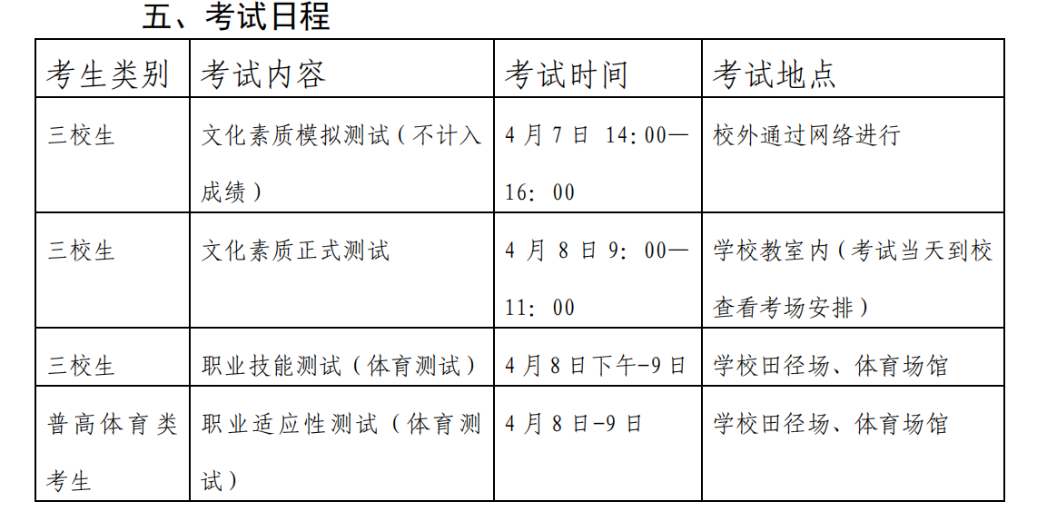 五、考试日程