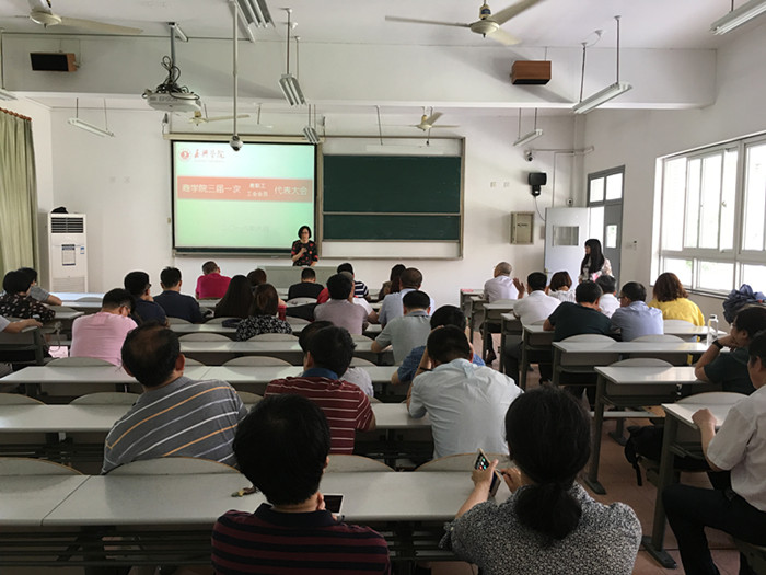 67日下午,必赢766net手机版三届一次教职工暨工会会员代表大会在教一149顺利召开,43名正式代表出席大会。