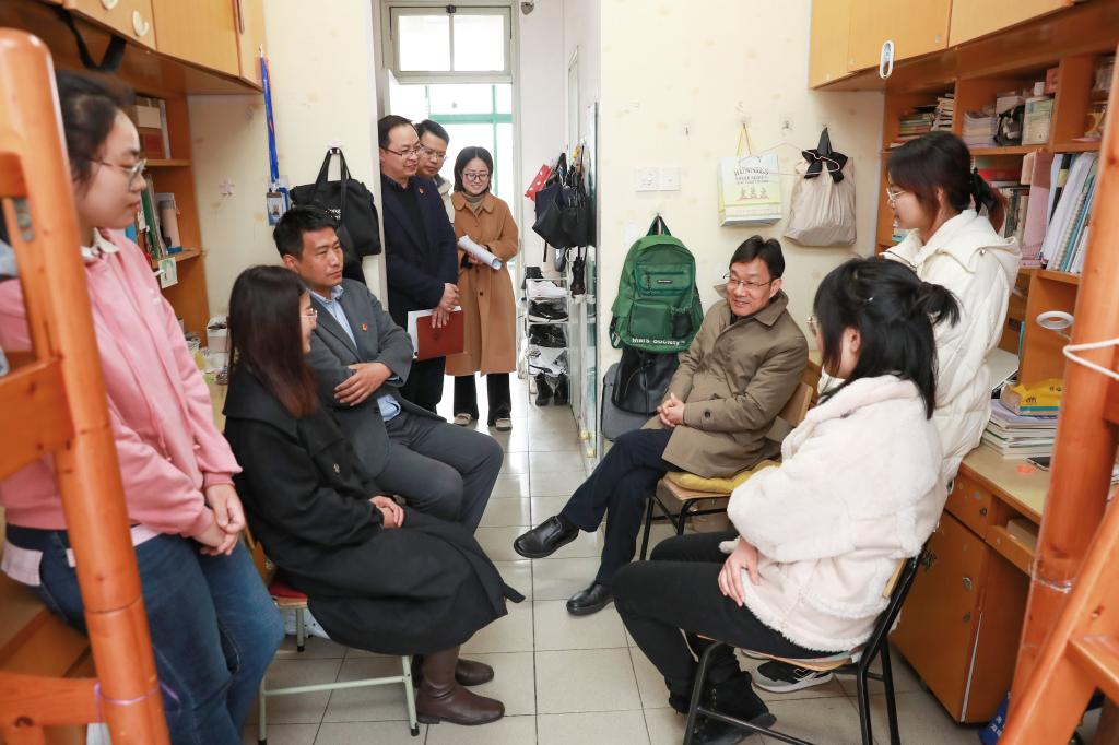 2月28日下午,校党委书记卢新波走访必赢766net手机版学生寝室看望返校学生,党校办主任王立玮、必赢766net手机版党委副书记杨燕群随同走访。
