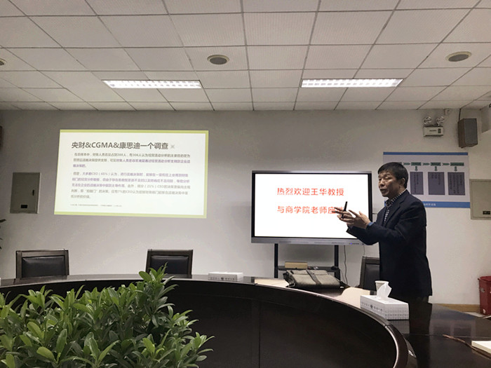 118日晚,广东财经大学原校长王华教授在经管中心为师生作 “智能化时代会计专业的融合与重构”的专题报告。