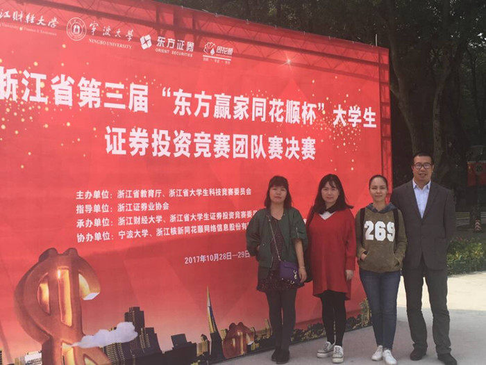 据悉,第三届东方赢家同花顺杯大学生证券投资竞赛由浙江省教育厅、浙江省大学生科技竞赛委员会主办,浙江财经大学、浙江省大学生证券投资竞赛委员会承办,宁波大学、浙江核新同花顺网络信息股份有限公司以及东方证券股份有限公司共同协办。大赛分投资策略组、市场交易组和量化交易组三个组别。大赛自20174月启动,分初赛、实盘操作和决赛三个阶段,全省共有63所学校,618个团队参赛。