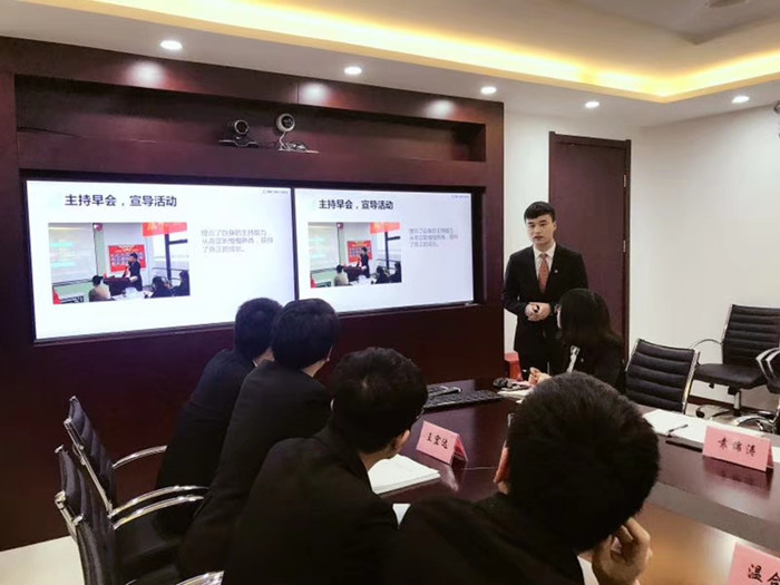 11名来自学院经济、金融等专业的2018届实习生,精心制作了PPT,从工作在新华、收获与反思、自我评定以及下阶段工作计划等四个方面汇报了前一阶段在新华保险的实习情况。新华保险的各位经理们进行了精彩点评,大家对我院学生的实习表现进行了充分的肯定,也提出了一些有益的建议。通过汇报,检验了各个实习生的实习与收获情况,帮助学生不断成长。