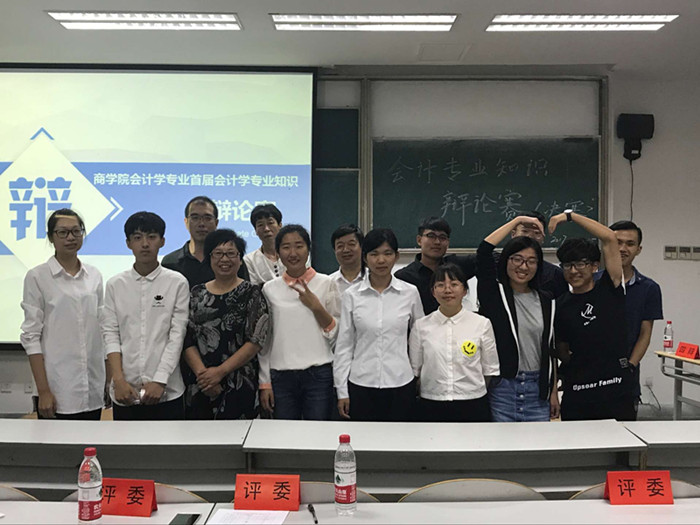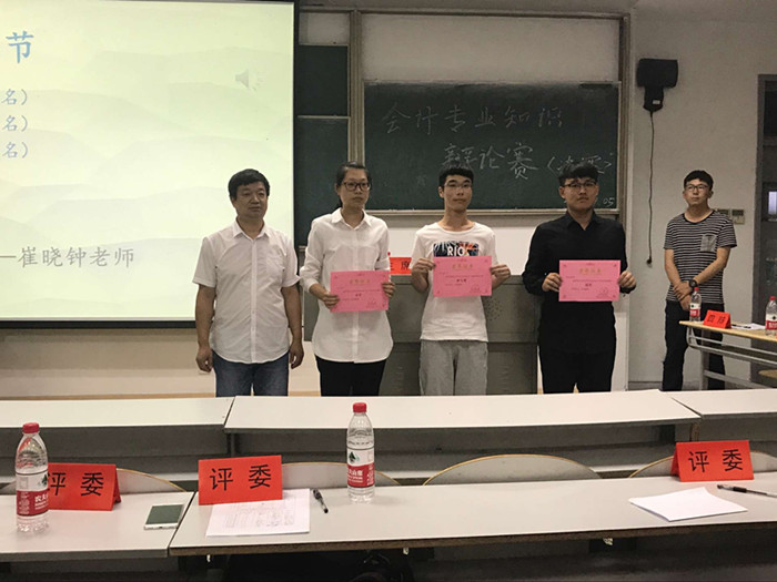 76日晚,必赢766net手机版首届会计专业知识辩论赛决赛在教一159举行。会计学专业崔晓钟、胡桂兰、马晨明、张敏彦4位老师应邀担任决赛评委,学院院长潘煜双出席决赛。