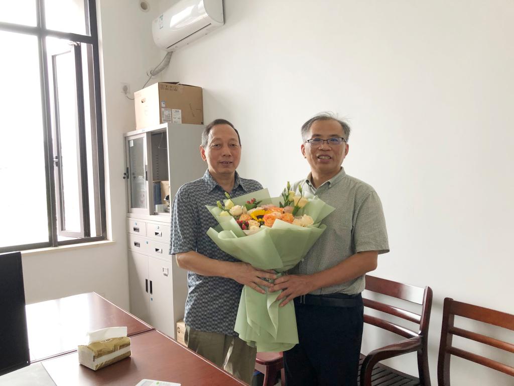 钱方明向学院一线教师代表陈至发教授送上鲜花与节日问候,对他从教几十年来一以贯之兢兢业业科研,踏踏实实教学,认认真真育人,以实际行动践行“方正为人、勤慎治学”校训精神的师者风范表示崇高敬意,感谢他为学校、学院发展作出的无私奉献。希望陈老师保重身体,一如既往关心支持学校、学院发展,多为年轻老师传授宝贵经验,为学校培养更多优秀的学生。
