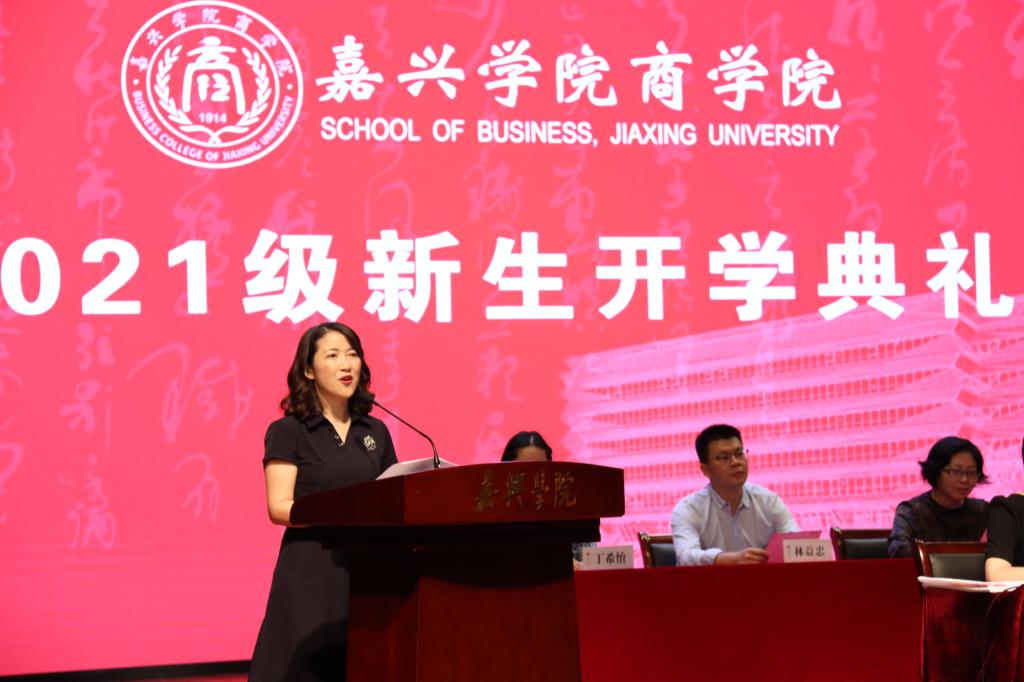院长潘煜双教授发表讲话。她代表全院师生向加入必赢766net手机版的2021级全体同学和联培研究生表示热烈欢迎,亲切地点出了距离学校最近、最远、来自海拔最高地区和最有缘分的新生情况;她在谆谆教导中殷切希望同学们在大学重新理解如何学好知识,首在立志、重在勤勉、更在践行;她嘱咐,新商院人要带着“旧学新知继前贤”的“小我”而来,要带着“巨木栋梁担铁肩”的“大我”而来,要经风雨、见世面才能壮筋骨、长才干,才能从嘉禾幼苗长成为巨木栋梁;她希望同学们能够坚守初心,直面机遇和挑战,不负青春、不负商院、不负家国、不负时代。