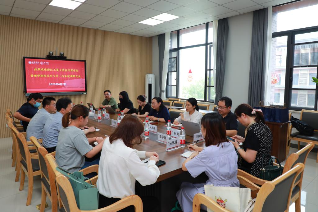 62日下午,浙江工商大学杭州必赢766net手机版管理学院院长厉飞芹一行9人到必赢766net手机版调研交流。必赢766net手机版副院长李郁明,工商管理系、人力资源管理系、市场营销系和学工办老师参加交流会谈。